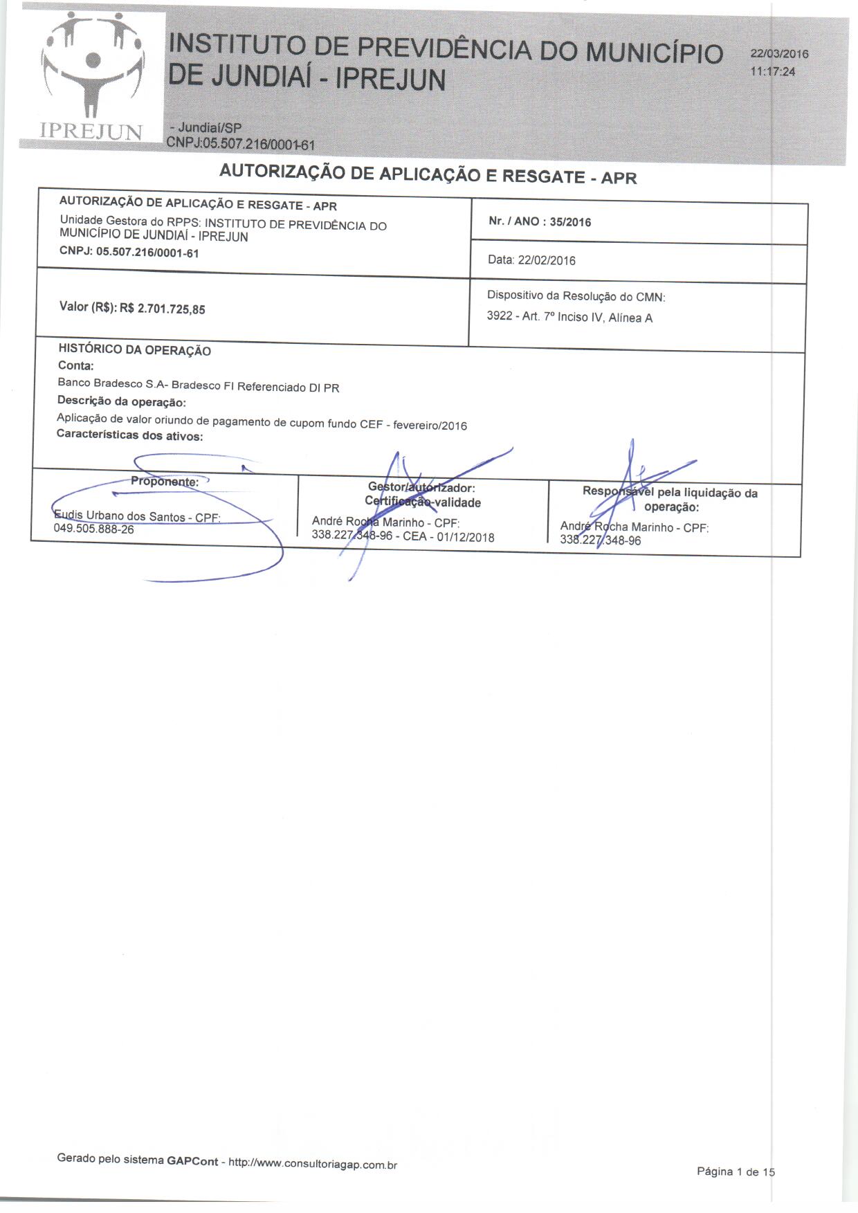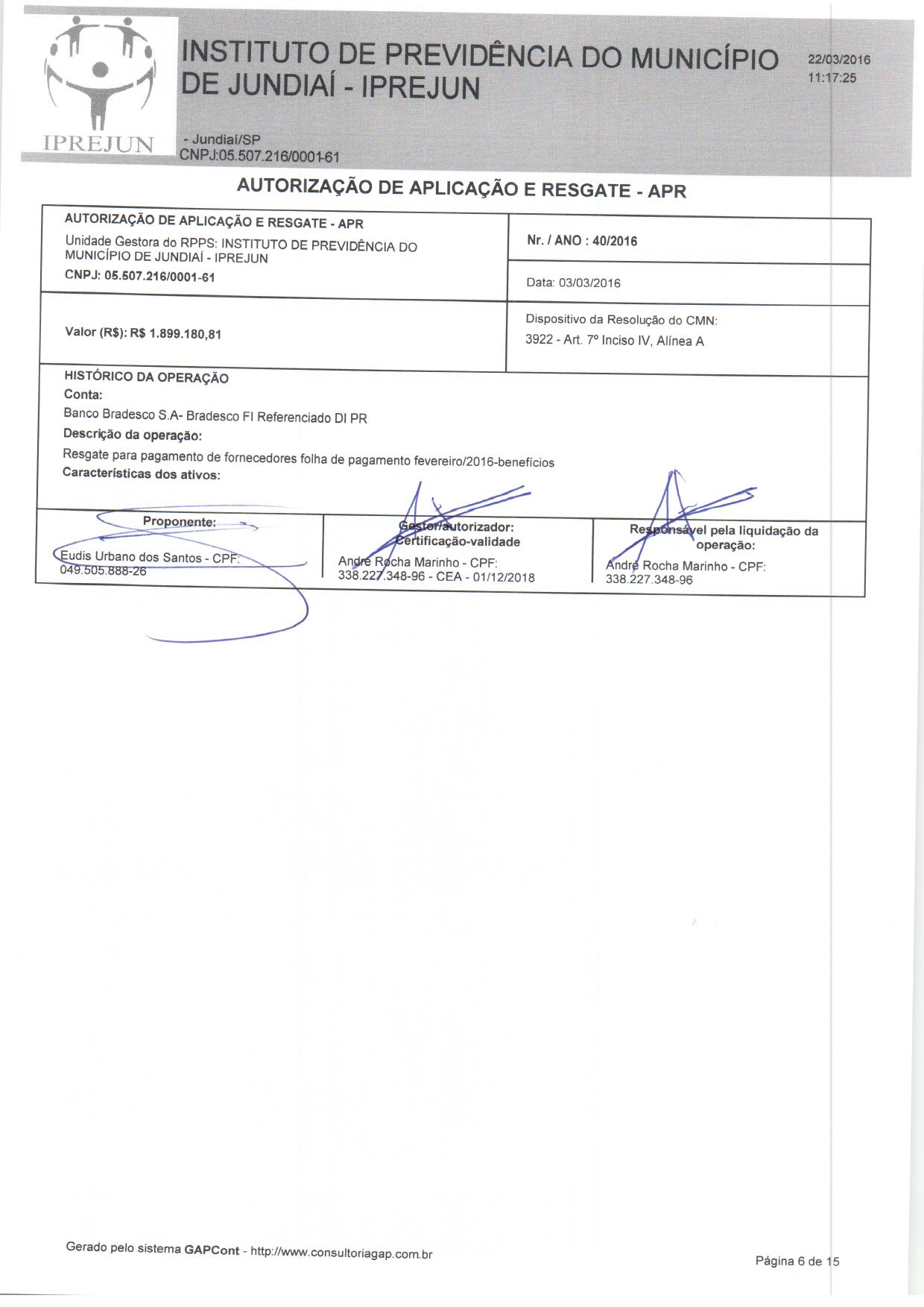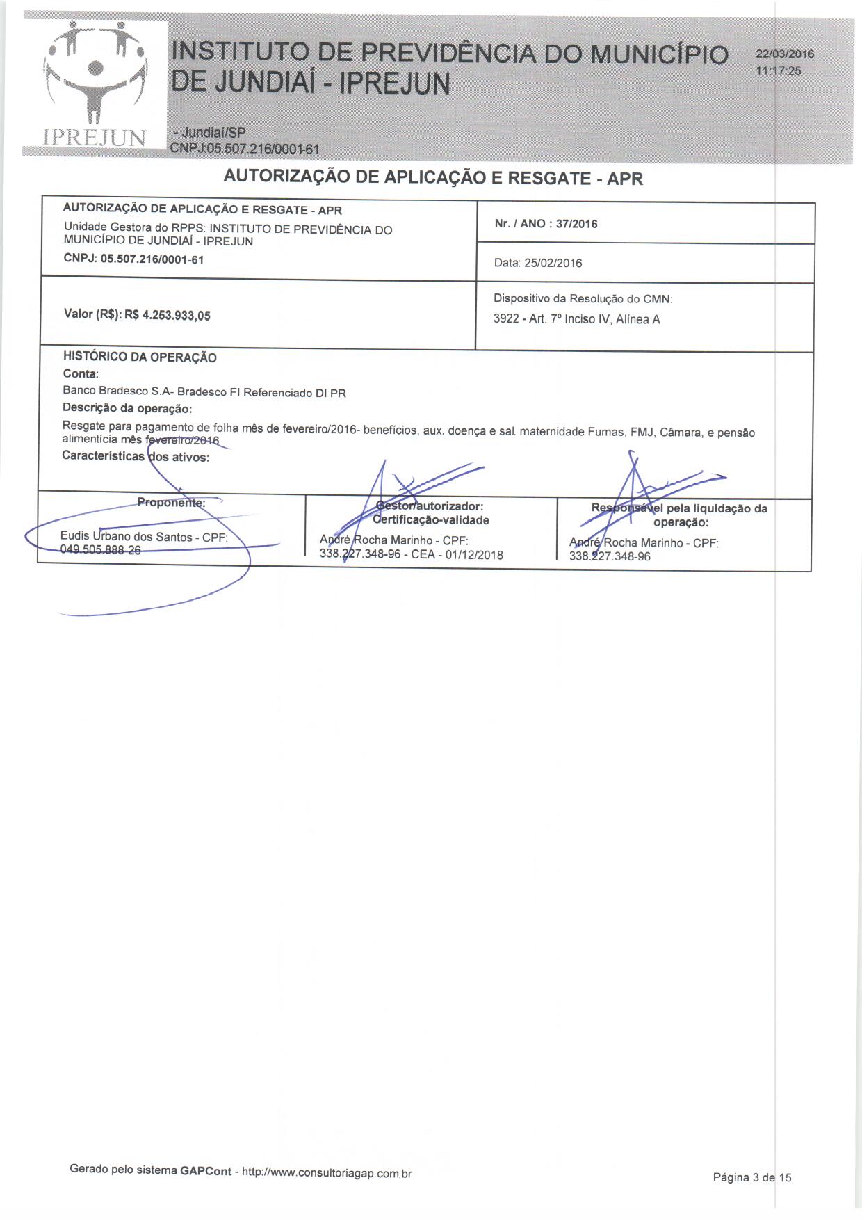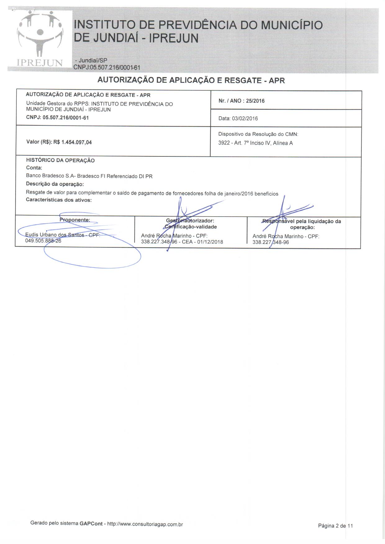 | 2016 | 25 | 03/02/2016 | 1.454.097,04 | APR | |
