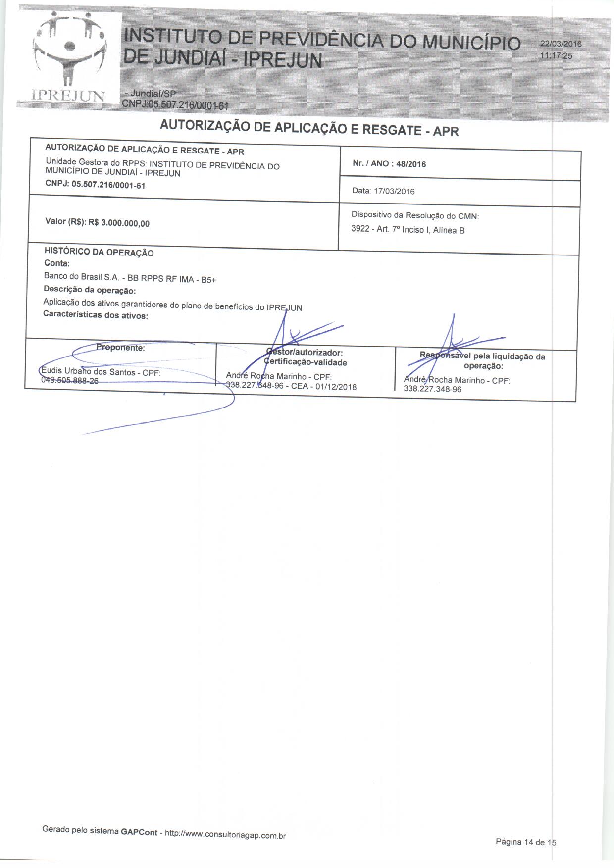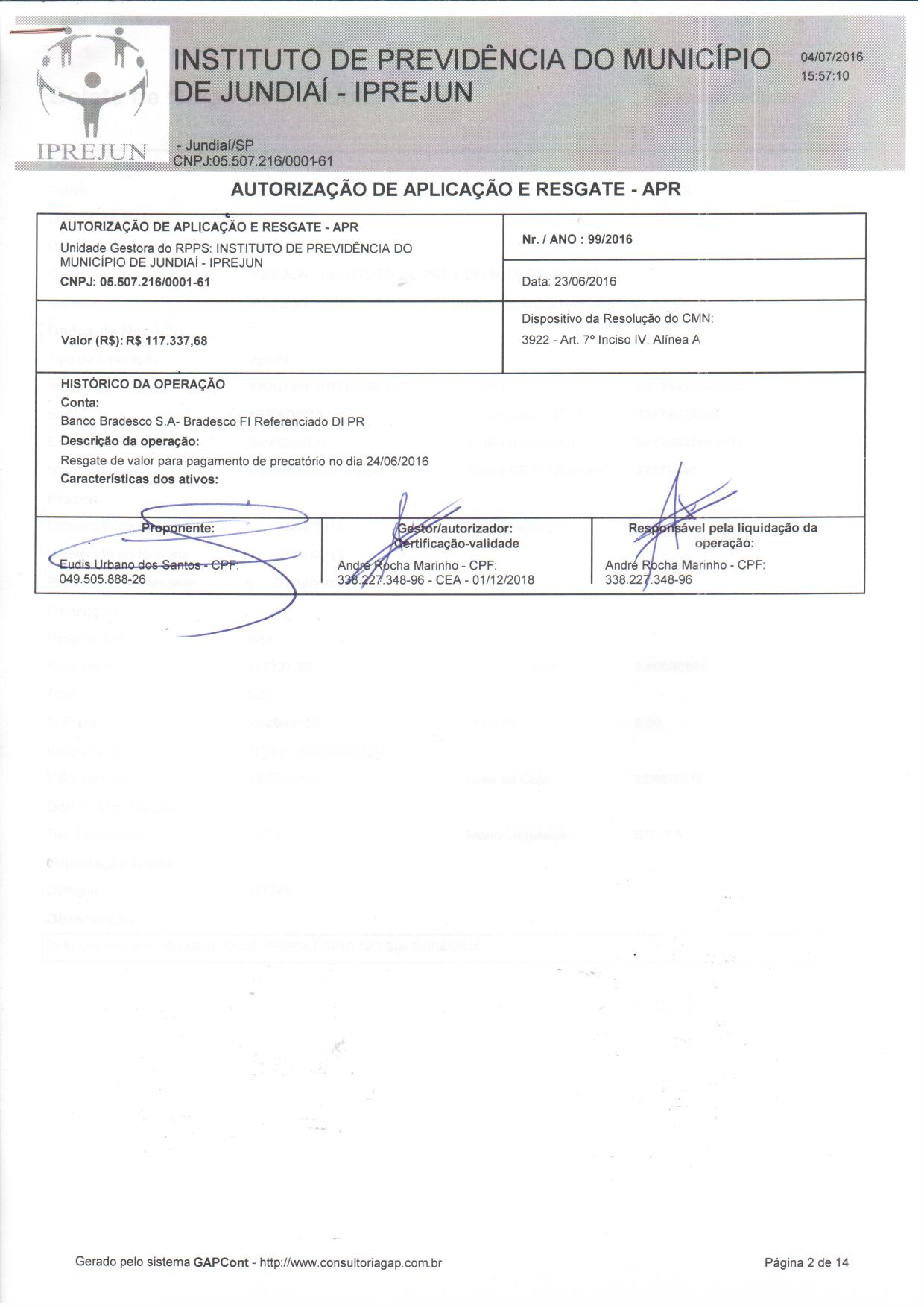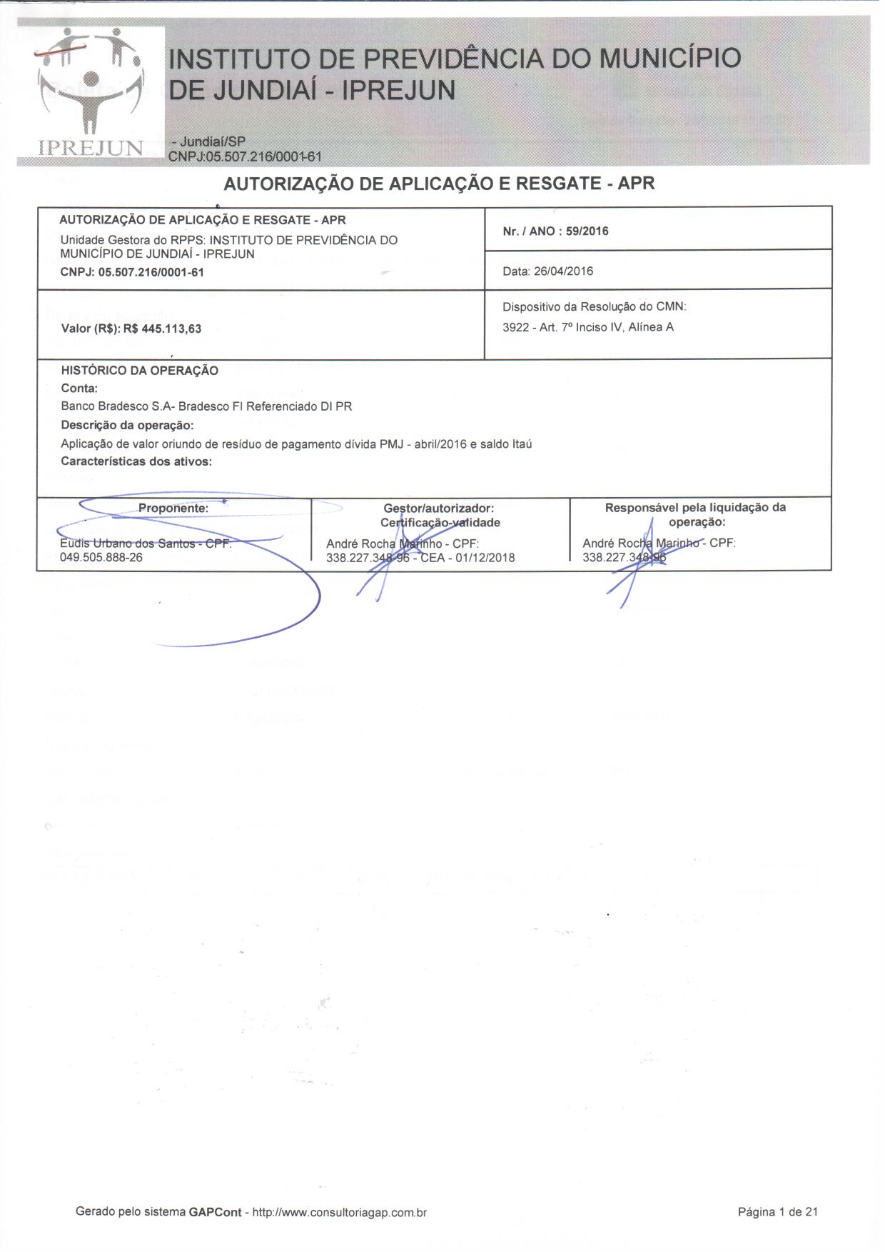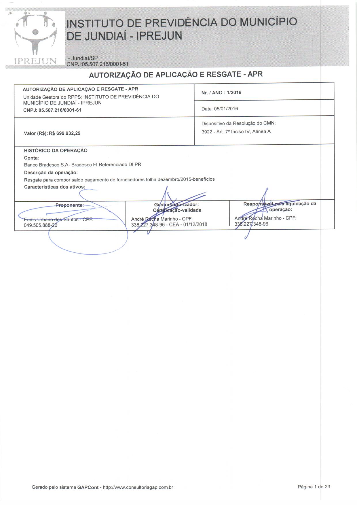 | 2016 | 25 | 03/02/2016 | 1.454.097,04 | APR | |