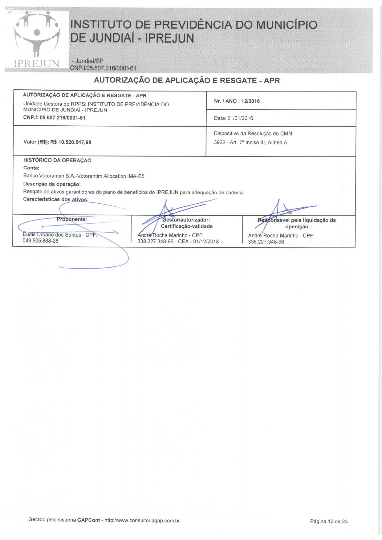 | 2016 | 12 | 21/01/2016 | 10.520.547,98 | APR | |