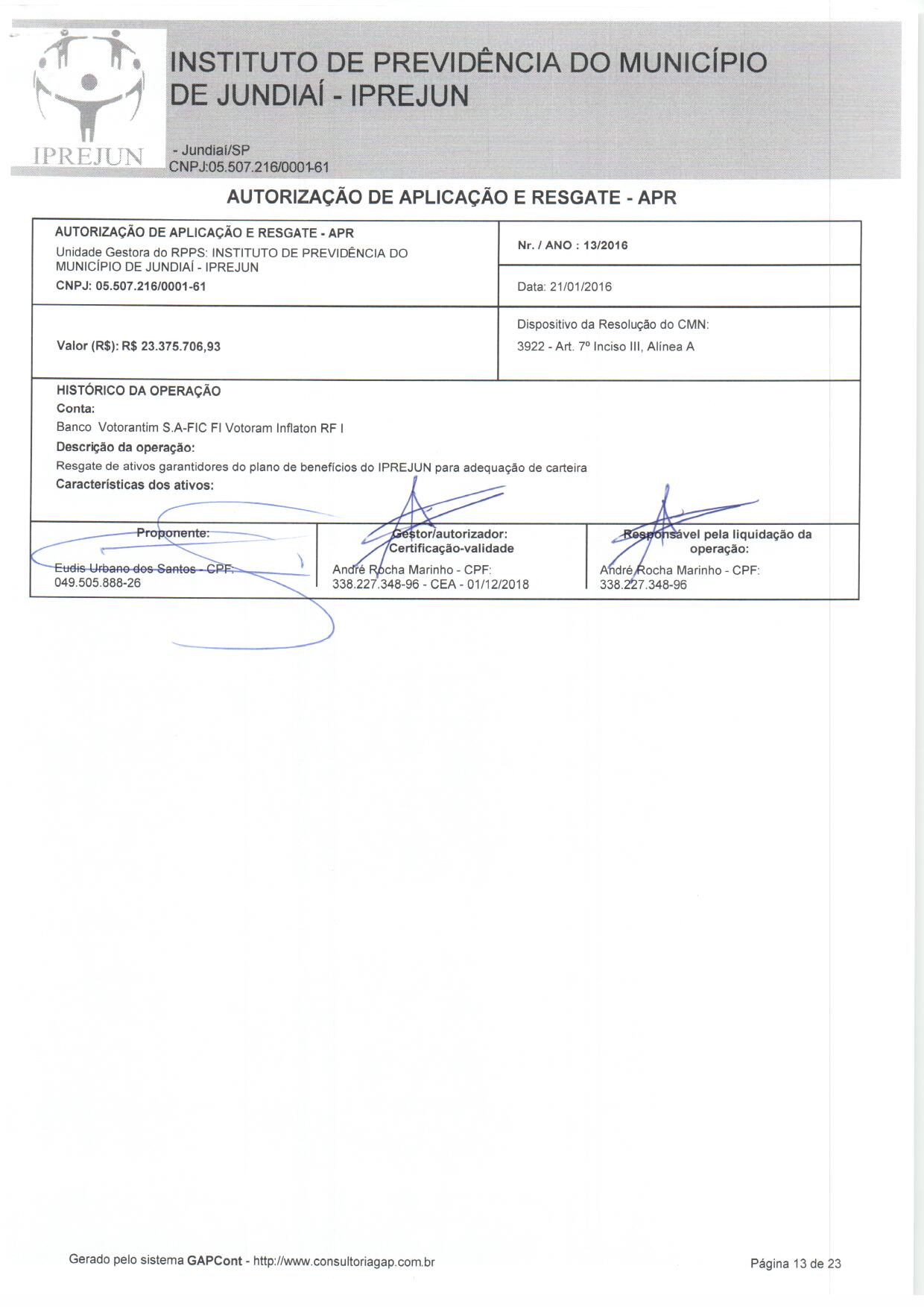 | 2016 | 13 | 21/01/2016 | 23.375.706,93 | APR | |