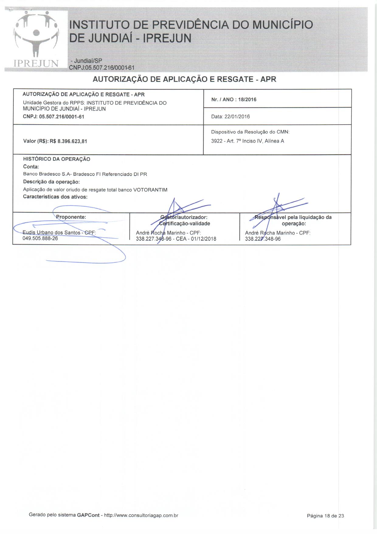| 2016 | 18 | 22/01/2016 | 8.396.623,81 | APR | |