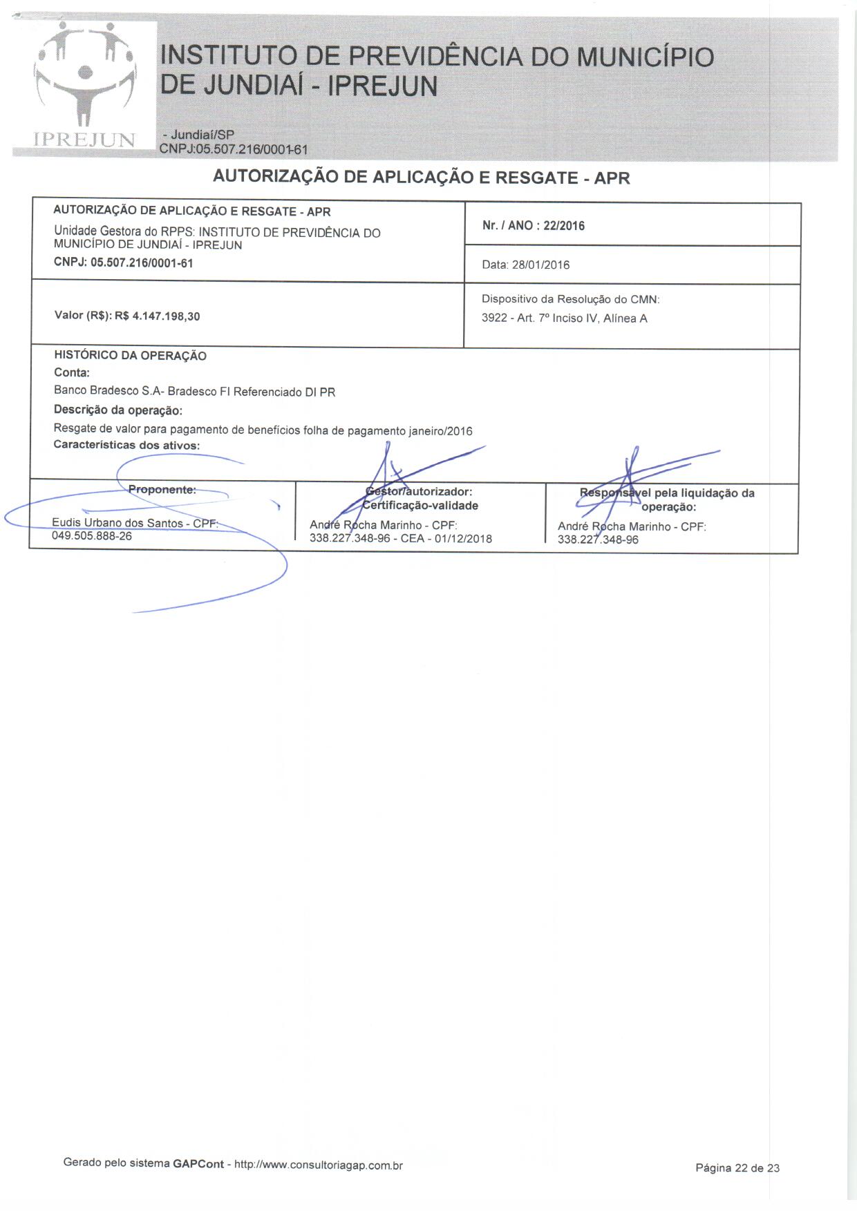 | 2016 | 22 | 28/01/2016 | 4.147.198,30 | APR | |