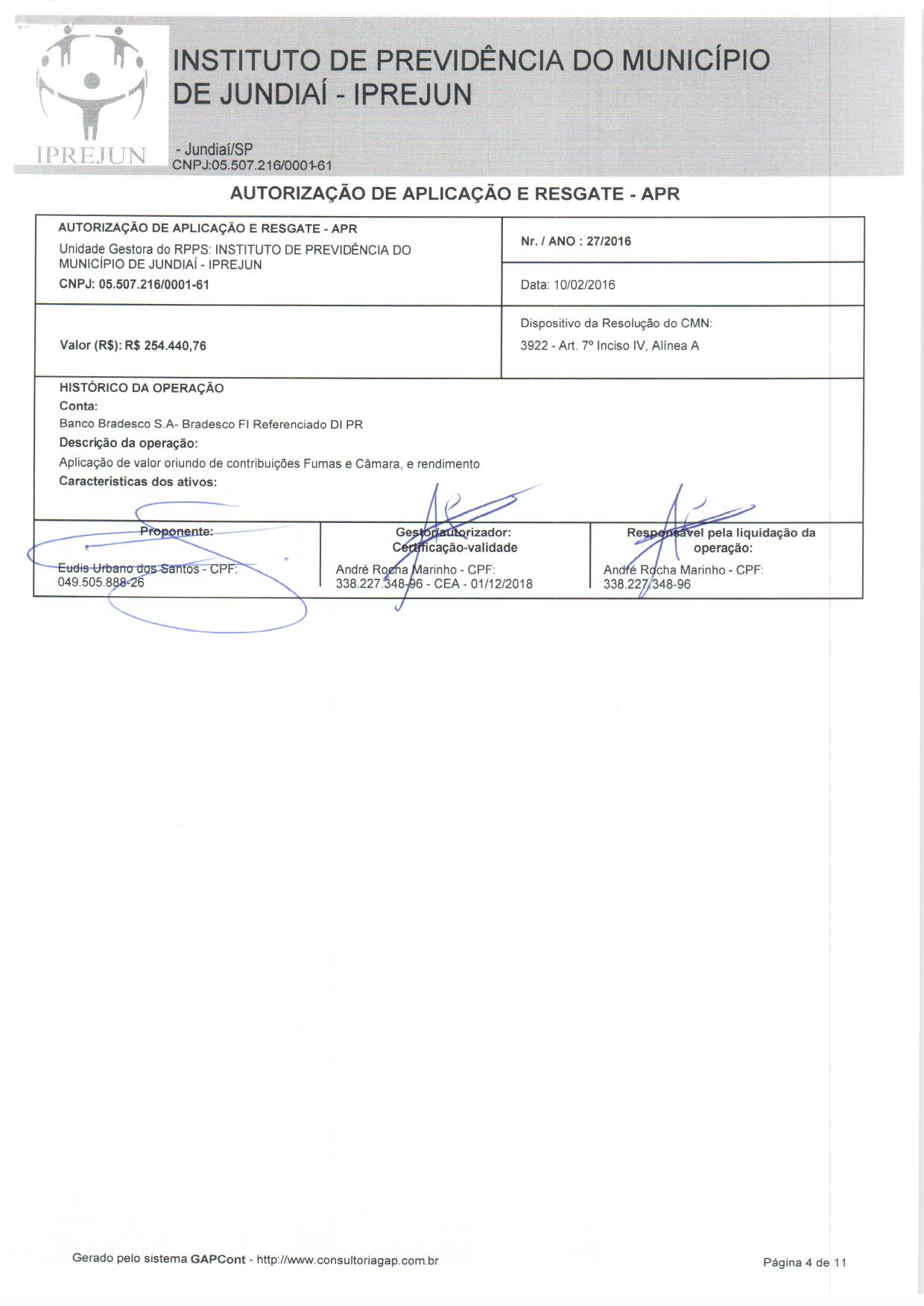 | 2016 | 27 | 10/02/2016 | 254.440,76 | APR | |