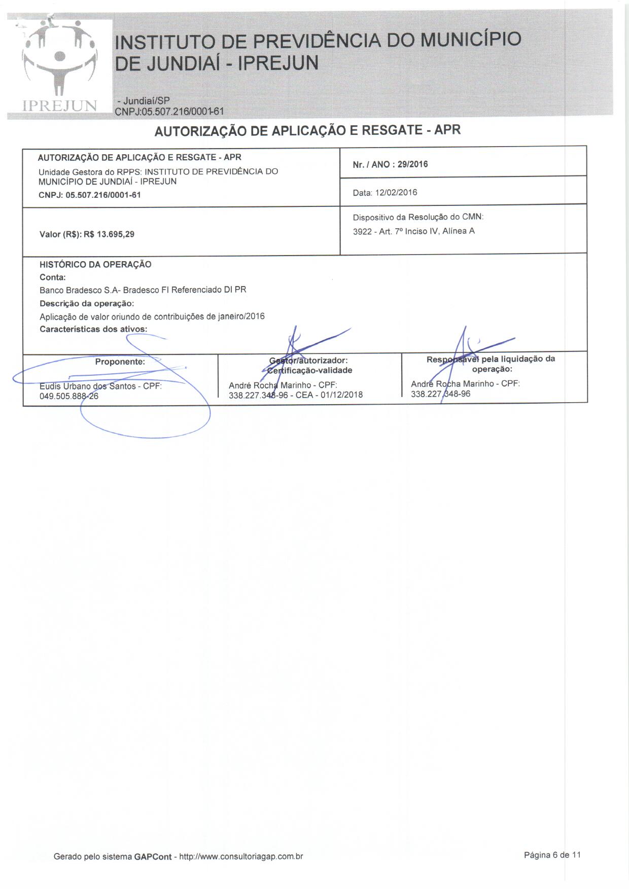 | 2016 | 29 | 12/02/2016 | 13.695,29 | APR | |