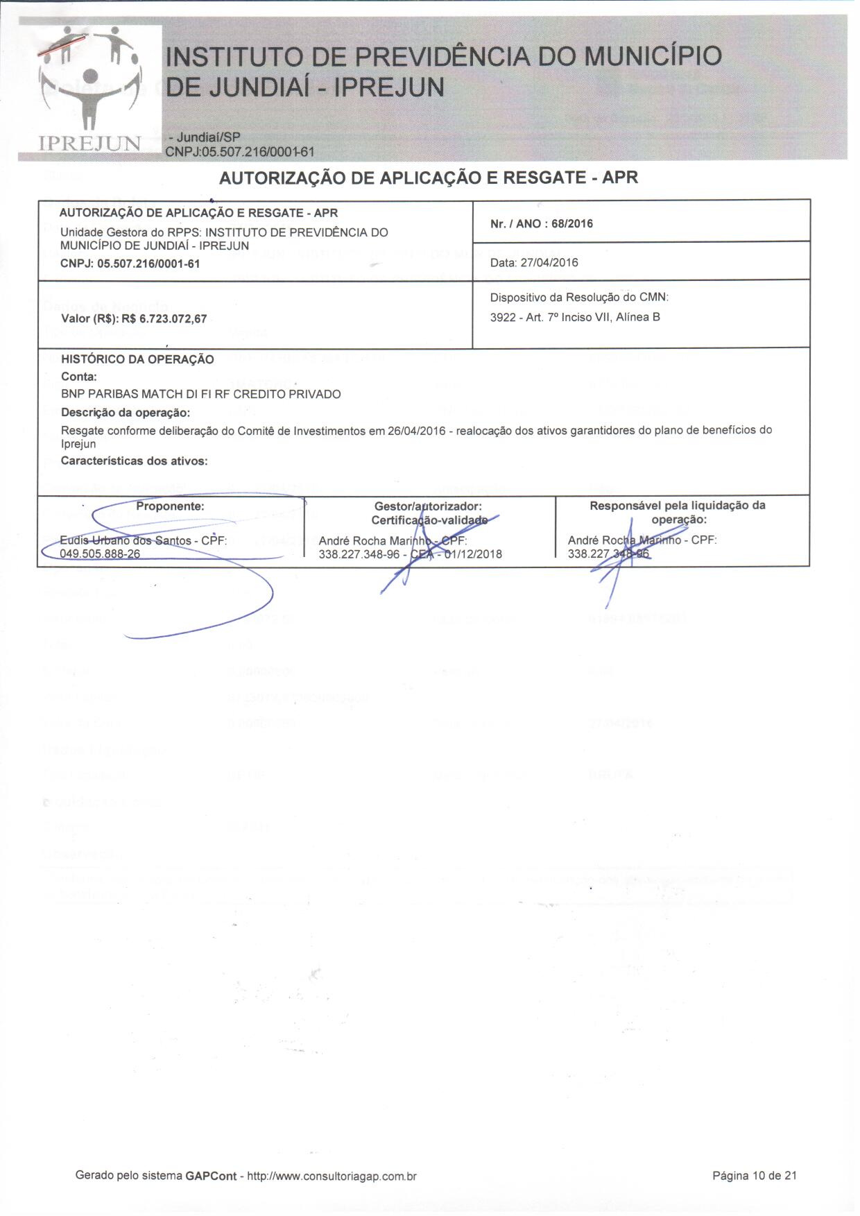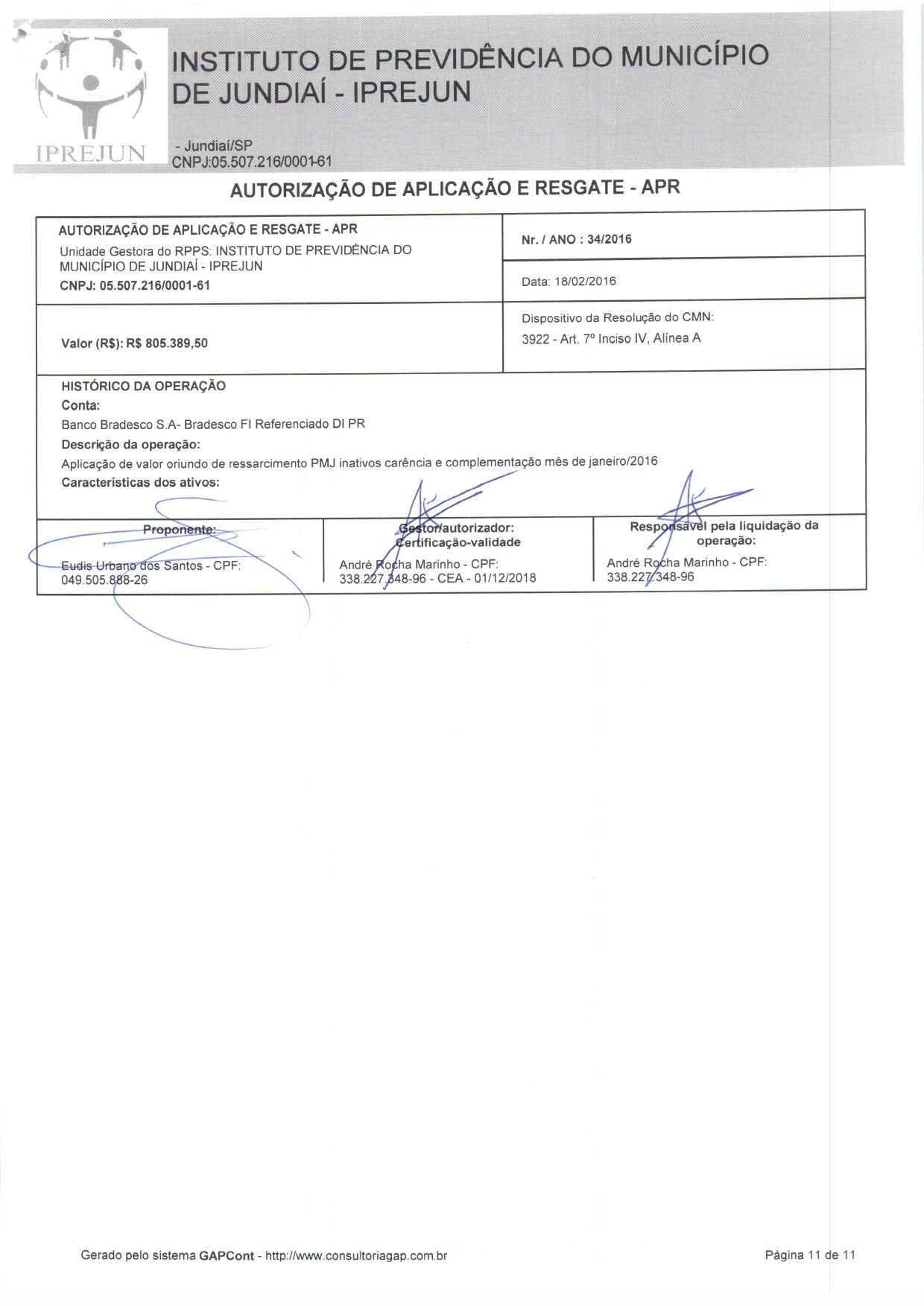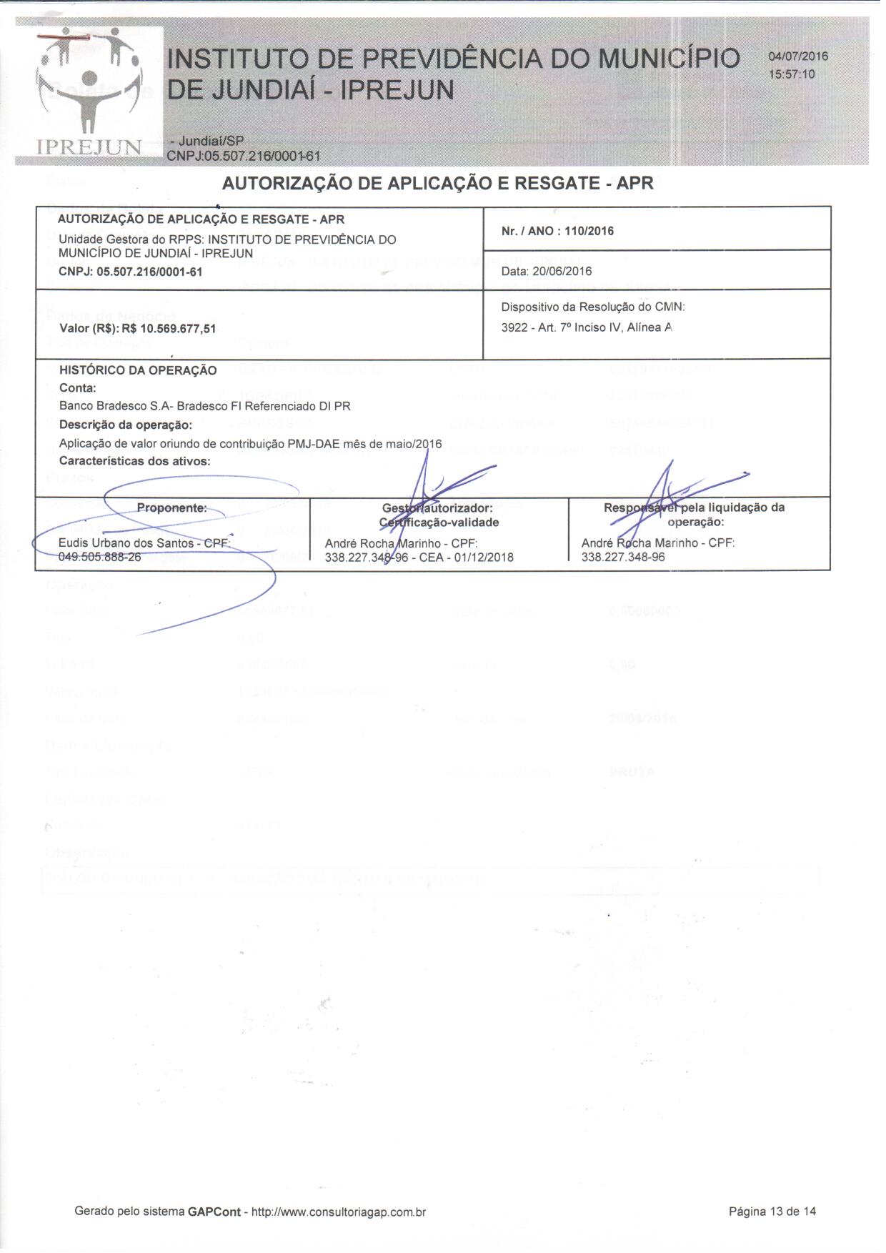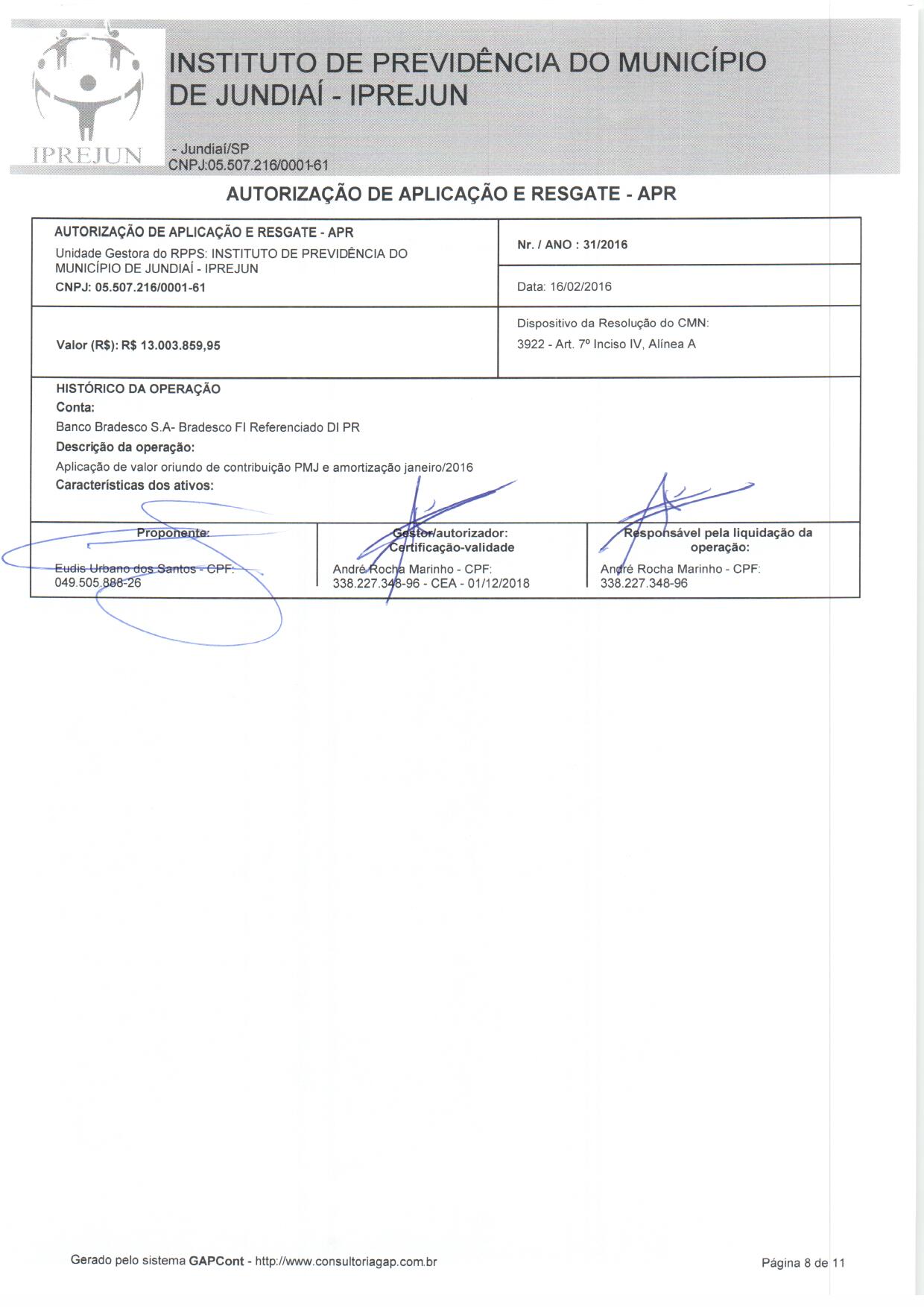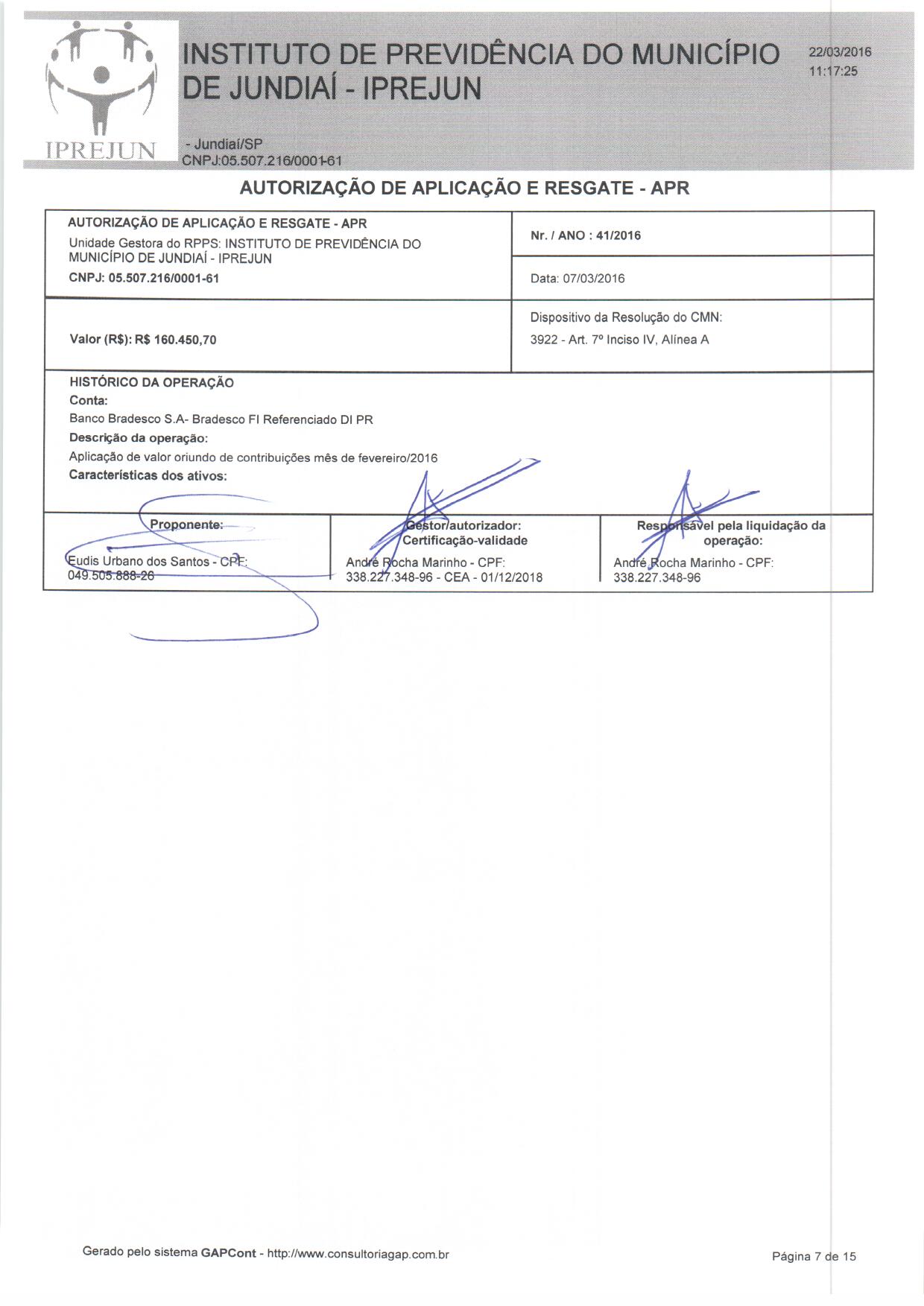| 2016 | 41 | 07/03/2016 | 160.450,70 | APR | |