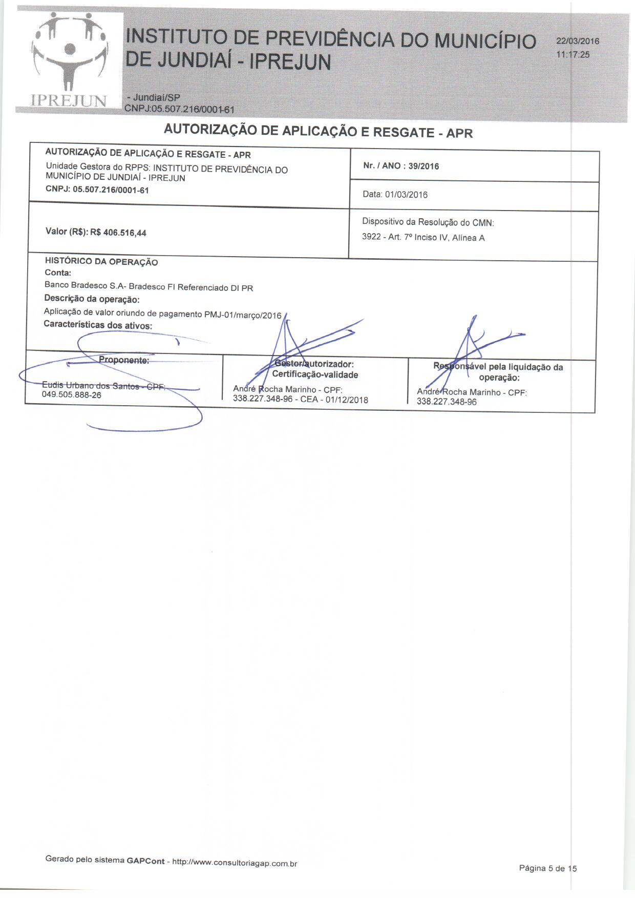 | 2016 | 39 | 01/03/2016 | 406.516,44 | APR | |