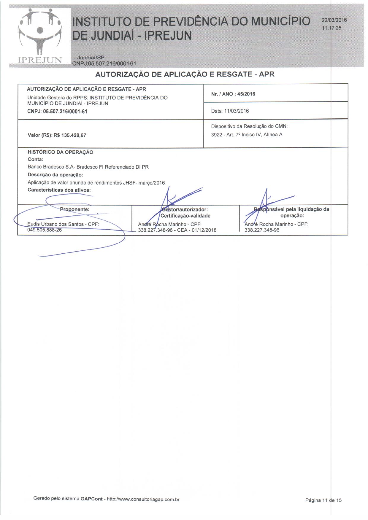 | 2016 | 45 | 11/03/2016 | 135.428,67 | APR | |
