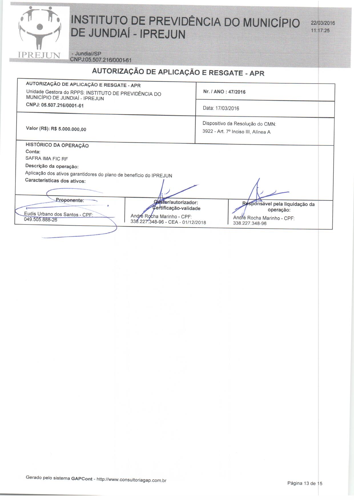 | 2016 | 44 | 10/03/2016 | 35.208,05 | APR | |