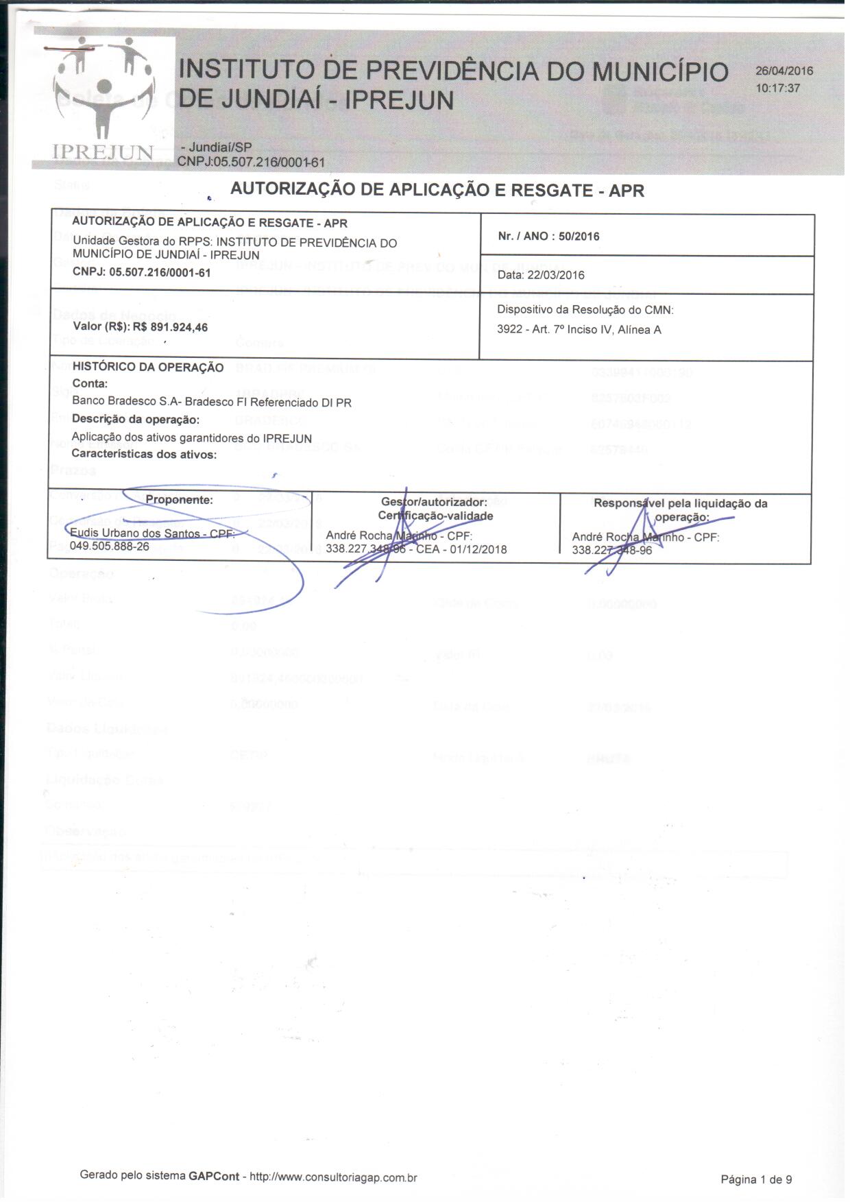 | 2016 | 50 | 22/03/2016 | 891.924,46 | APR | |