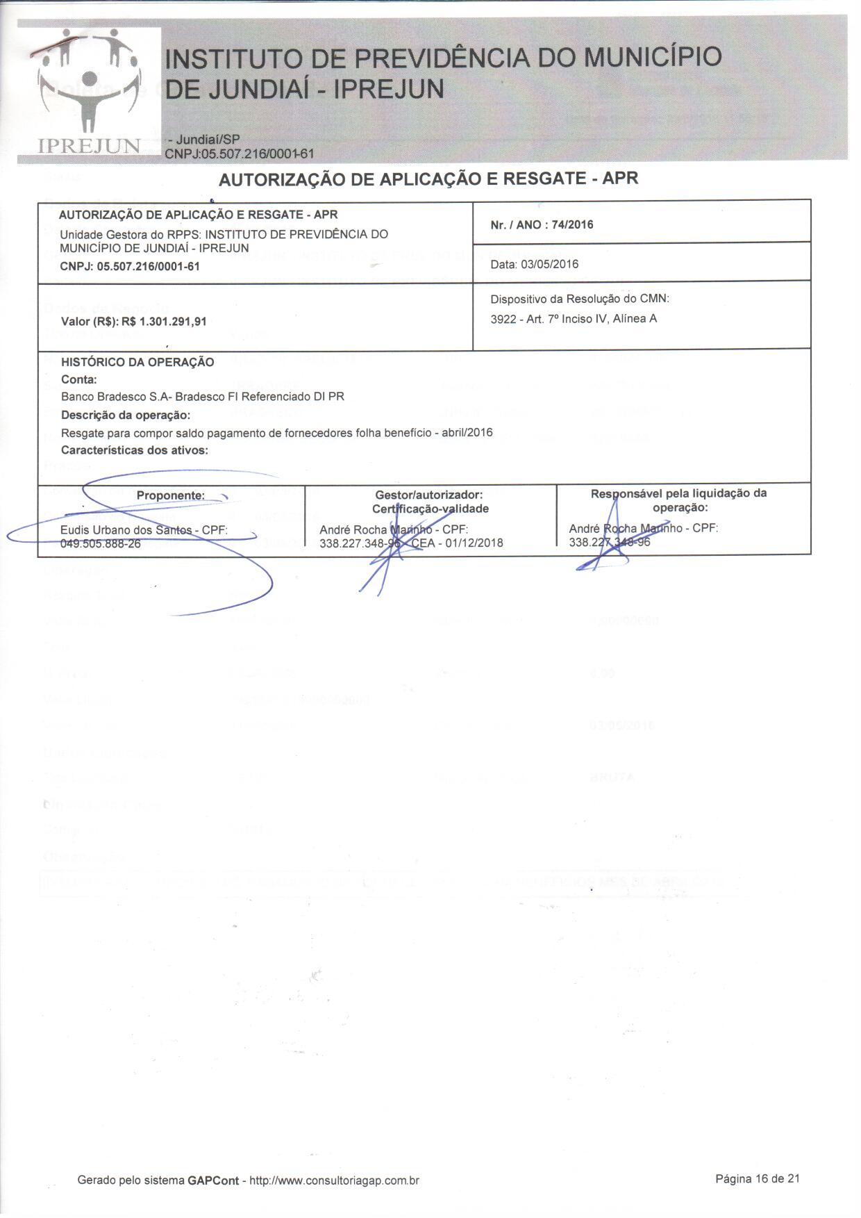 | 2016 | 74 | 03/05/2016 | 1.301.291,91 | APR | |
