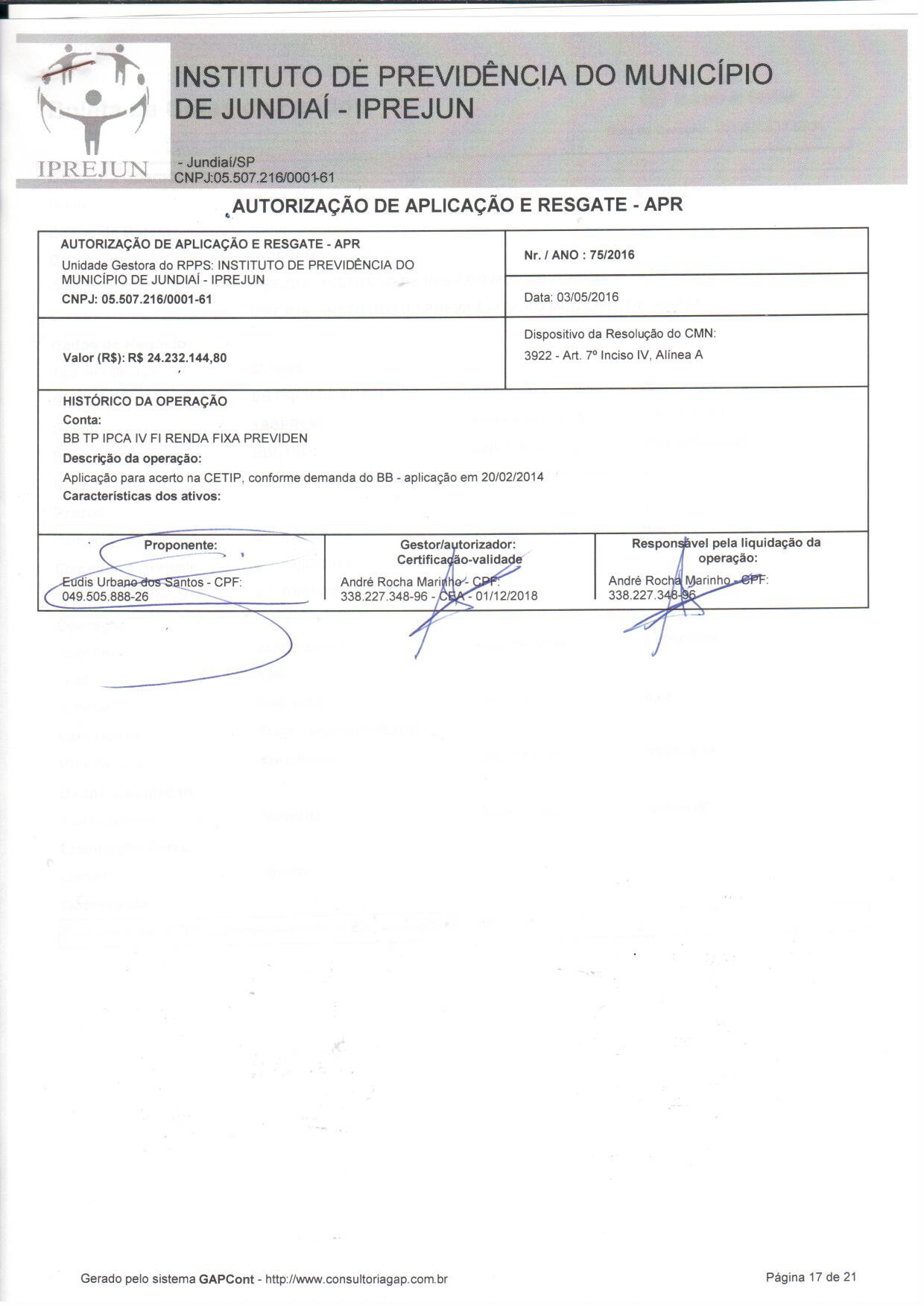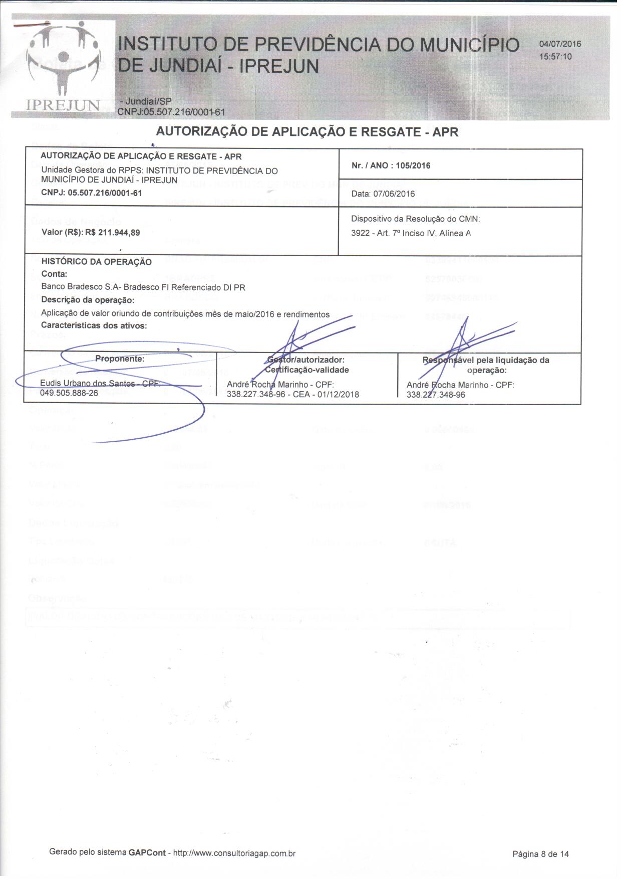 | 2016 | 105 | 07/06/2016 | 211.944,89 | APR | |