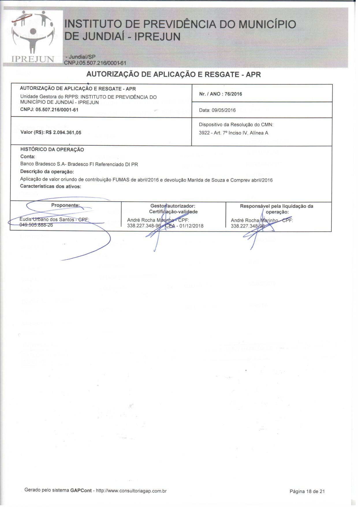 | 2016 | 76 | 09/05/2016 | 2.094.361,05 | APR | |