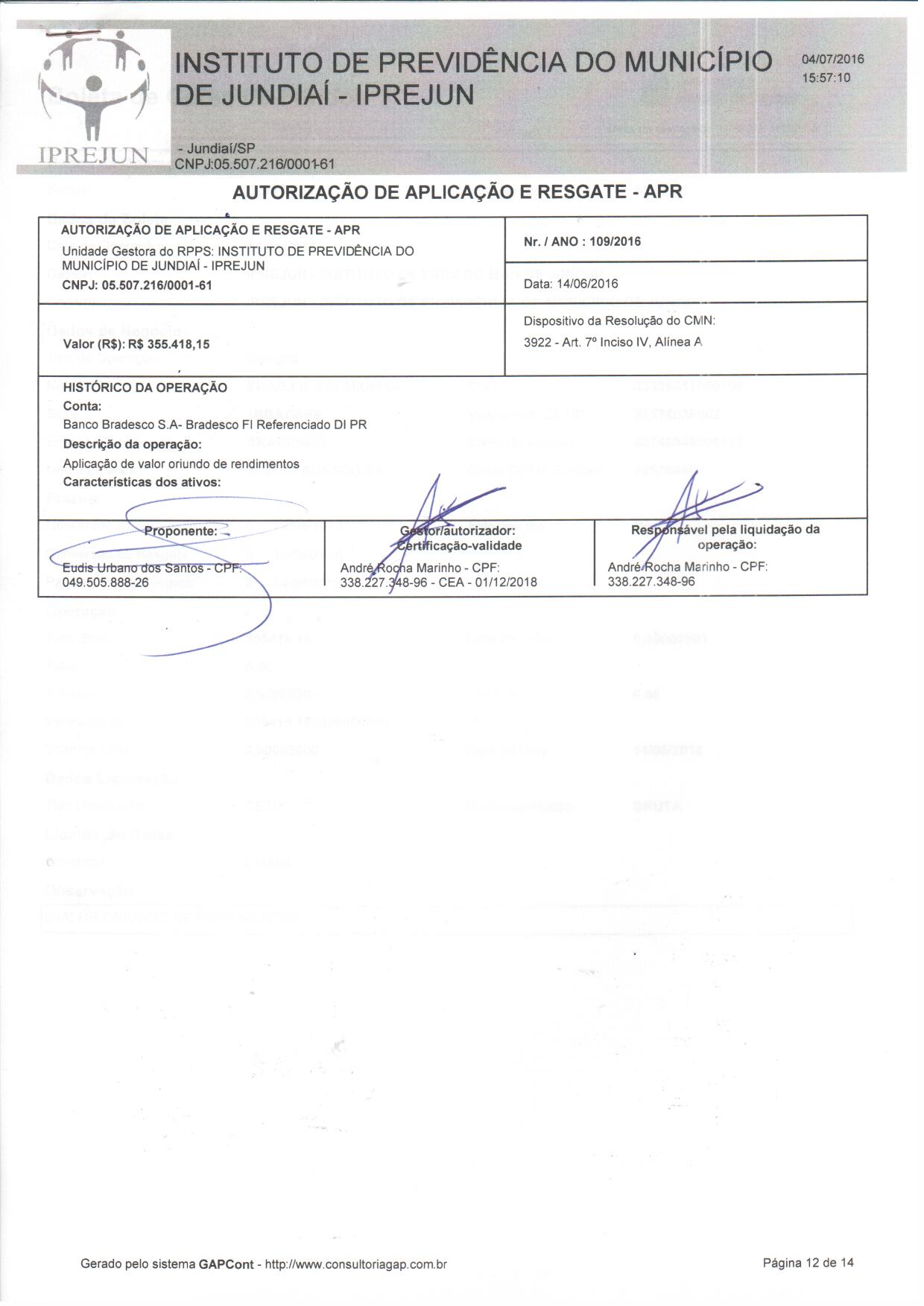 | 2016 | 109 | 14/06/2016 | 355.418,15 | APR | |