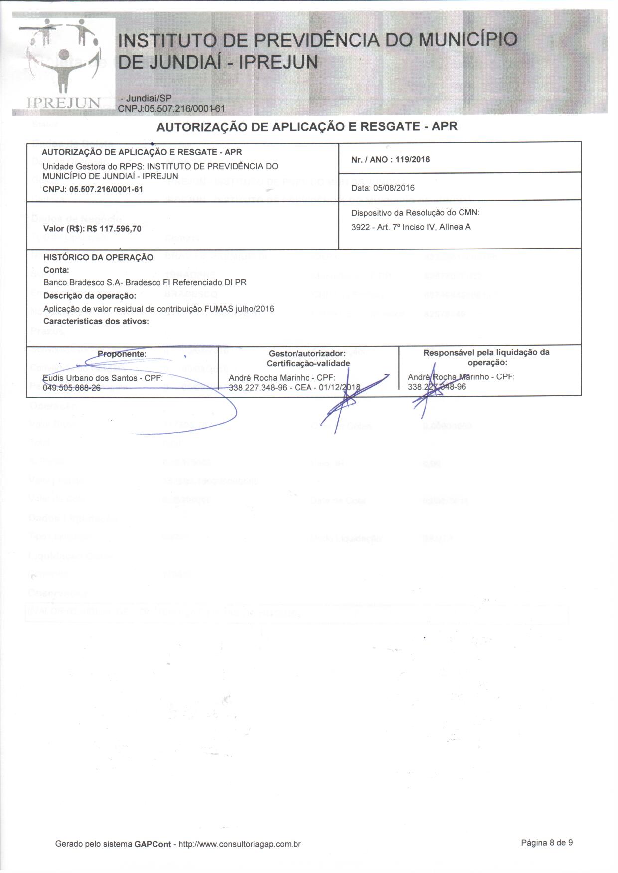 | 2016 | 119 | 05/08/2016 | 117.596,70 | APR | |
