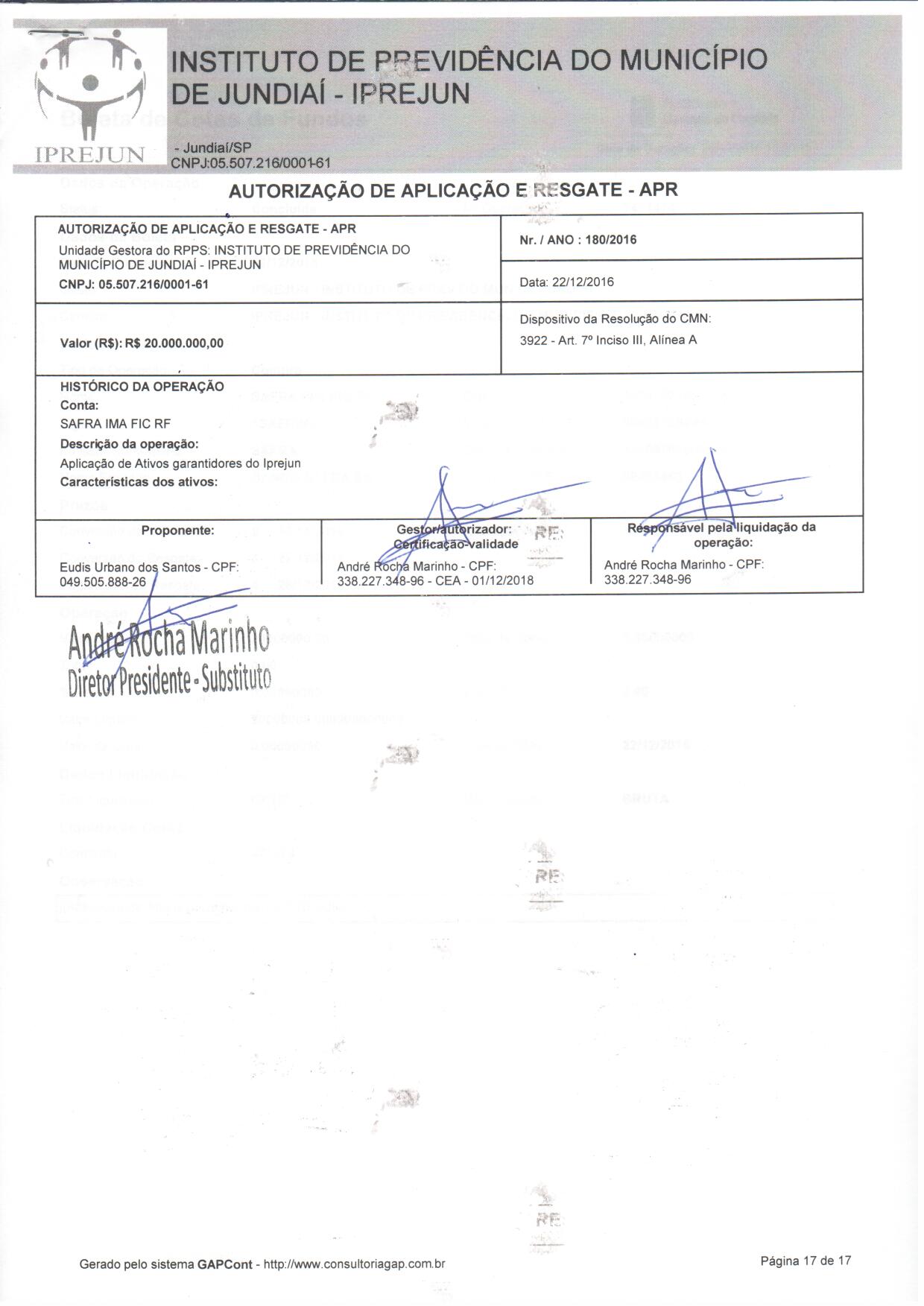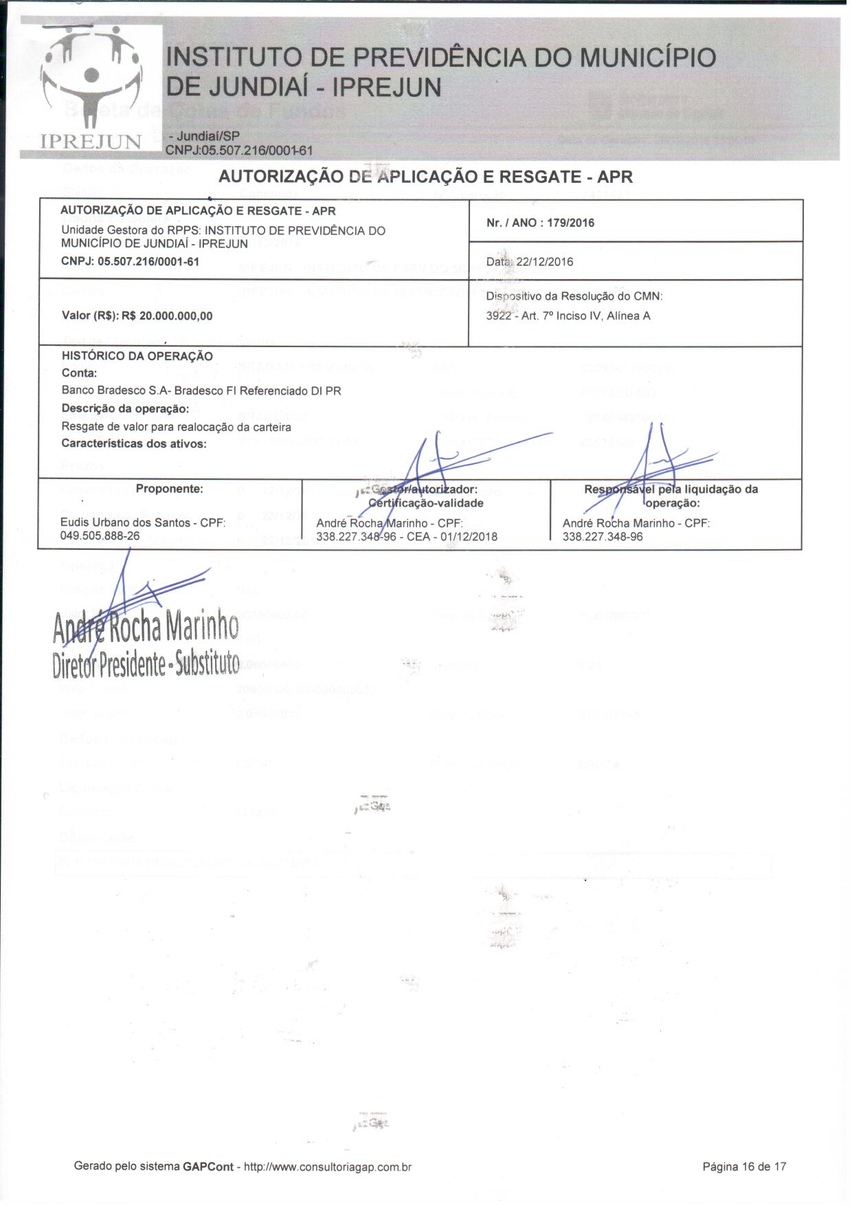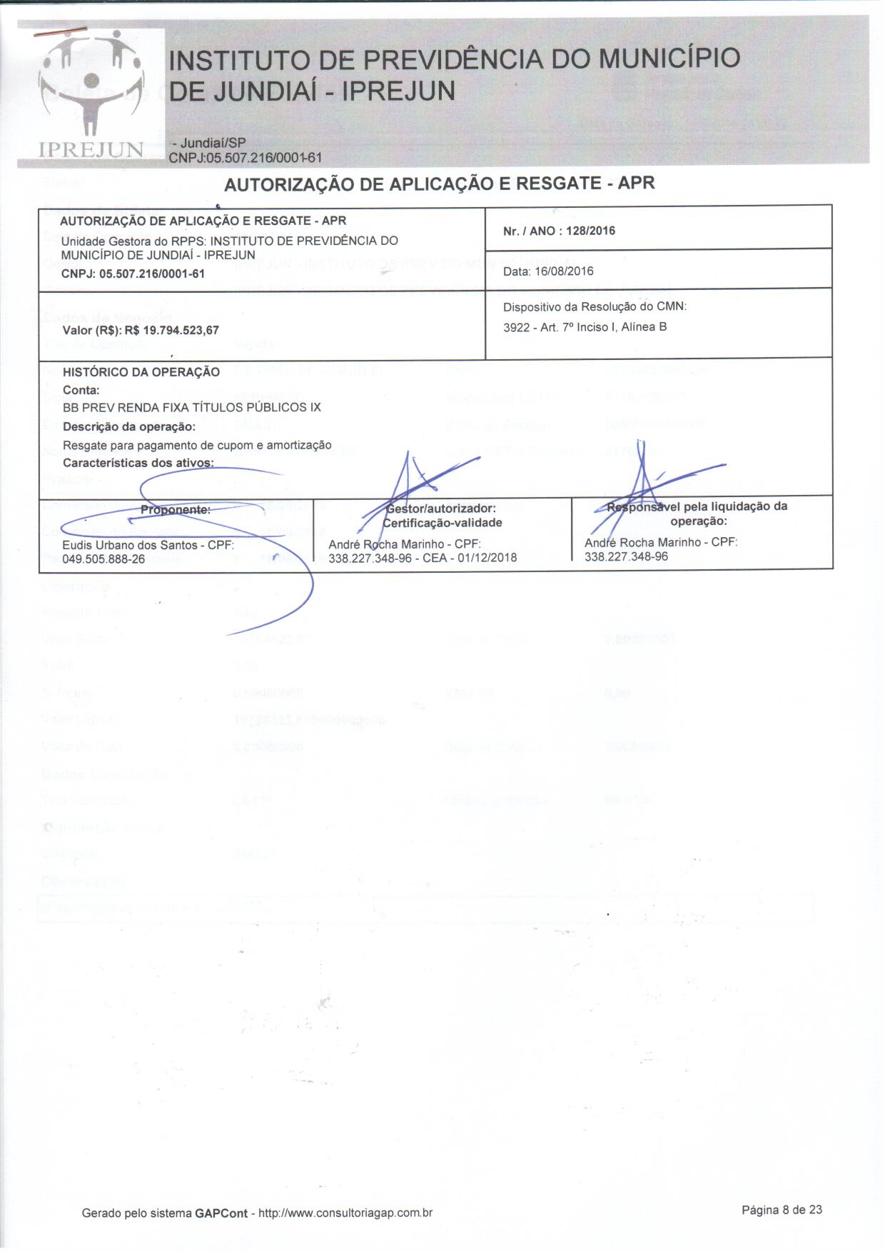 | 2016 | 128 | 16/08/2016 | 19.794.523,67 | APR | |