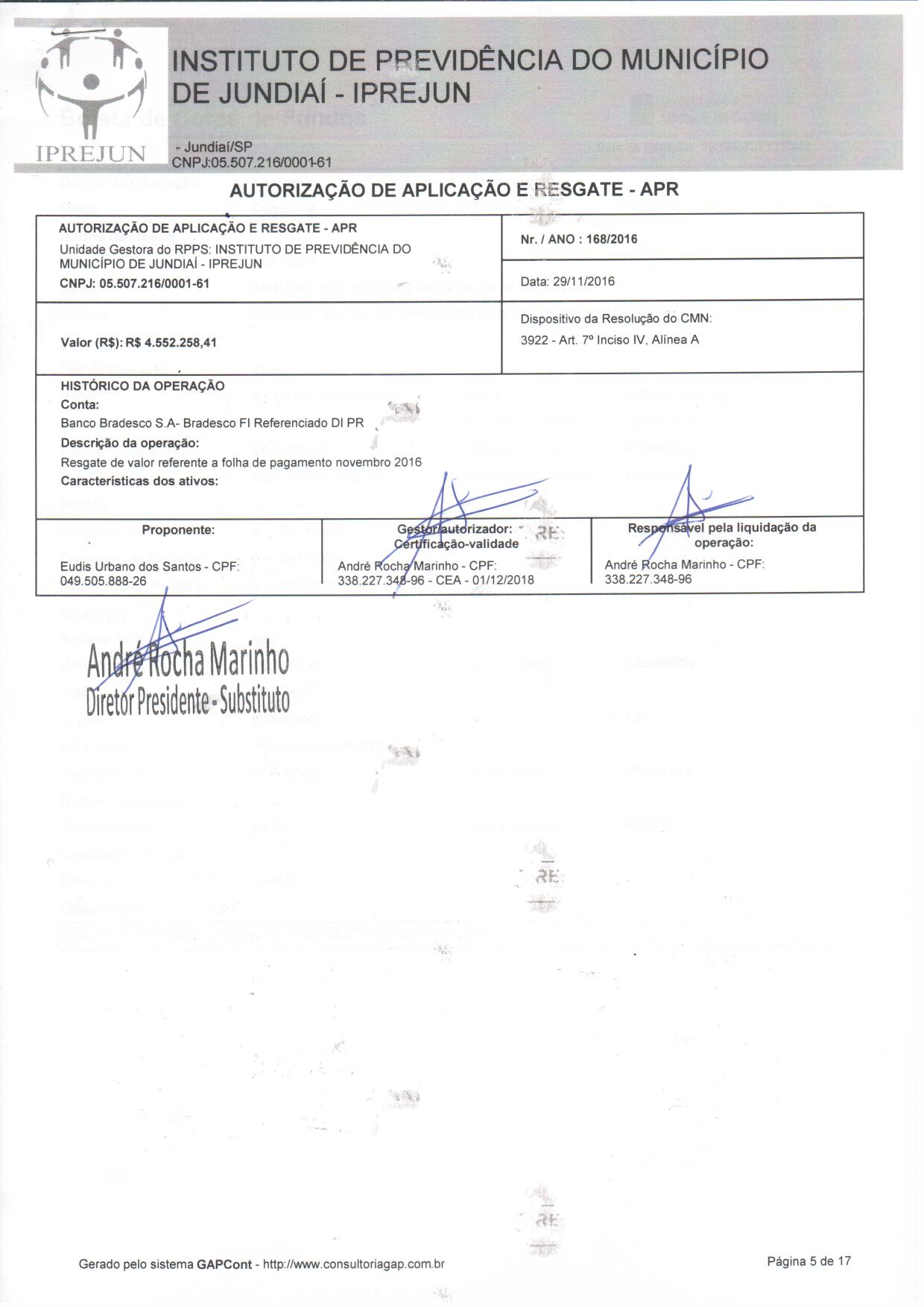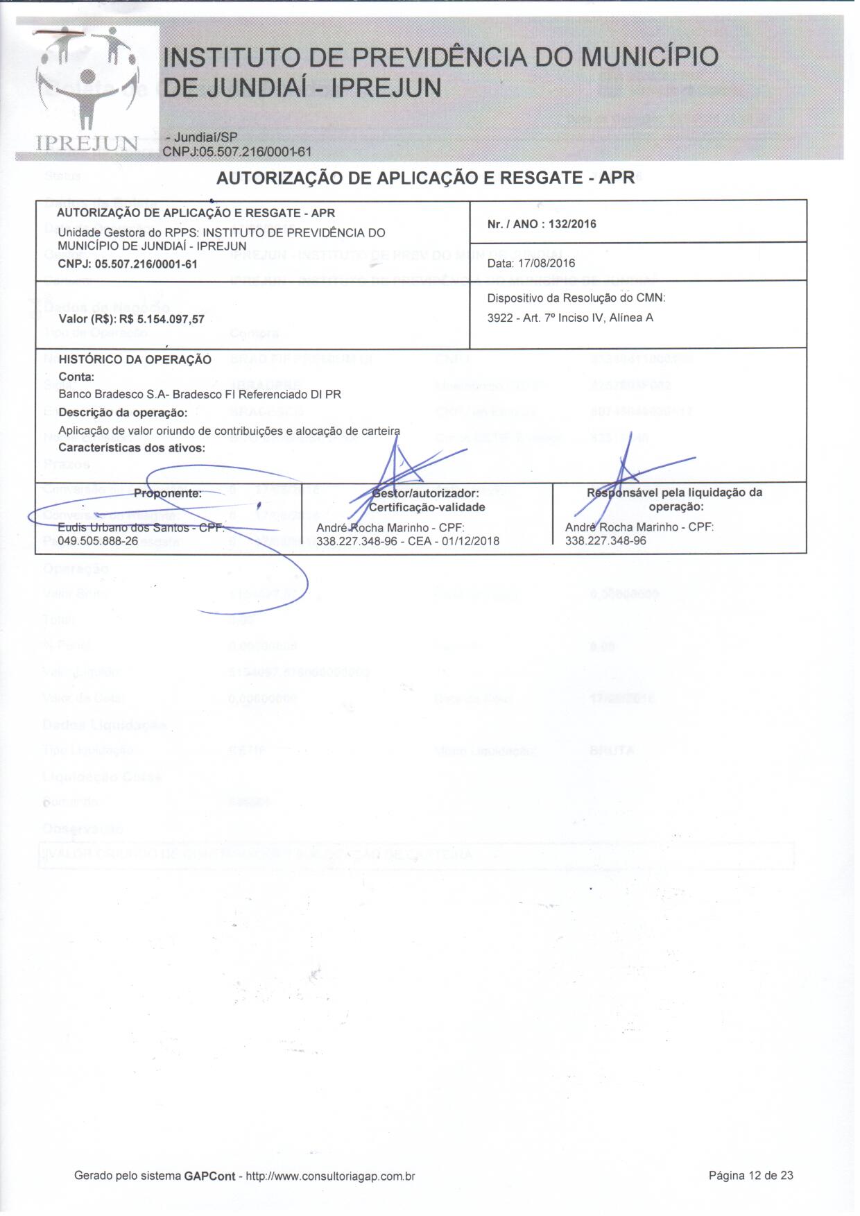 | 2016 | 132 | 17/08/2016 | 5.154.097,57 | APR | |