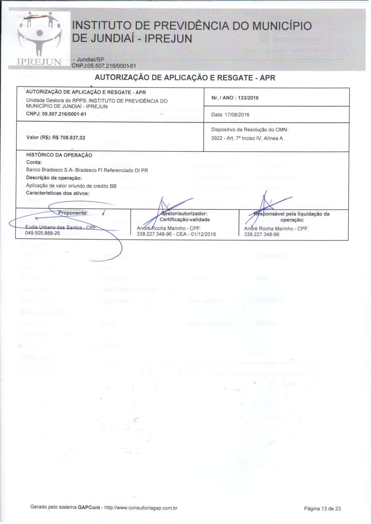 | 2016 | 133 | 17/08/2016 | 708.637,02 | APR | |