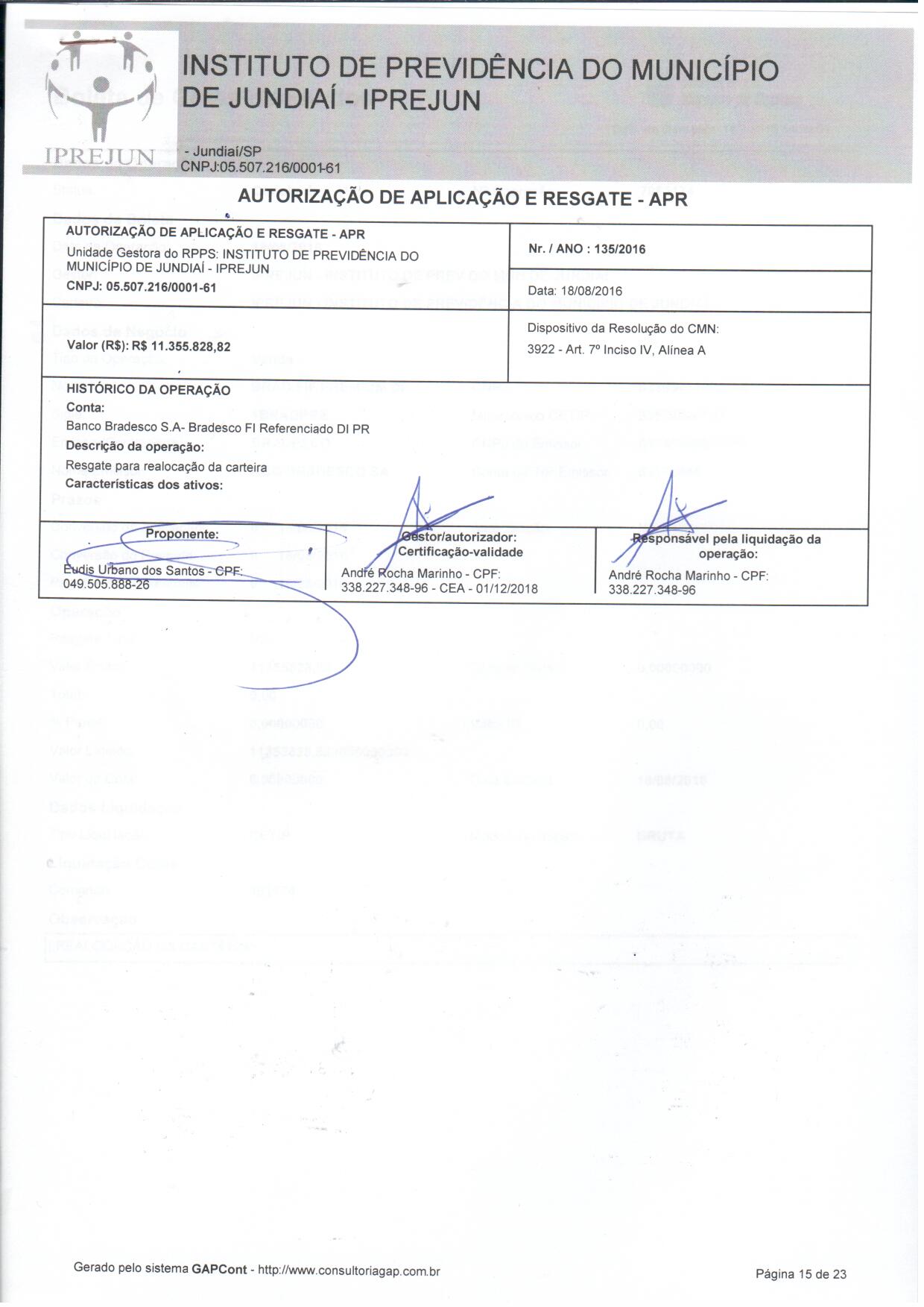 | 2016 | 135 | 18/08/2016 | 11.355.828,82 | APR | |