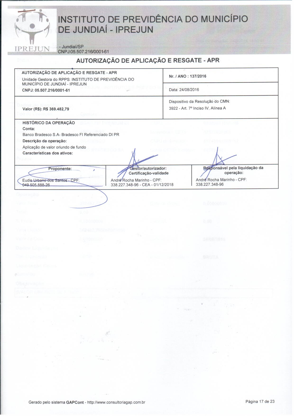 | 2016 | 122 | 11/08/2016 | 23.909.992,42 | APR | |