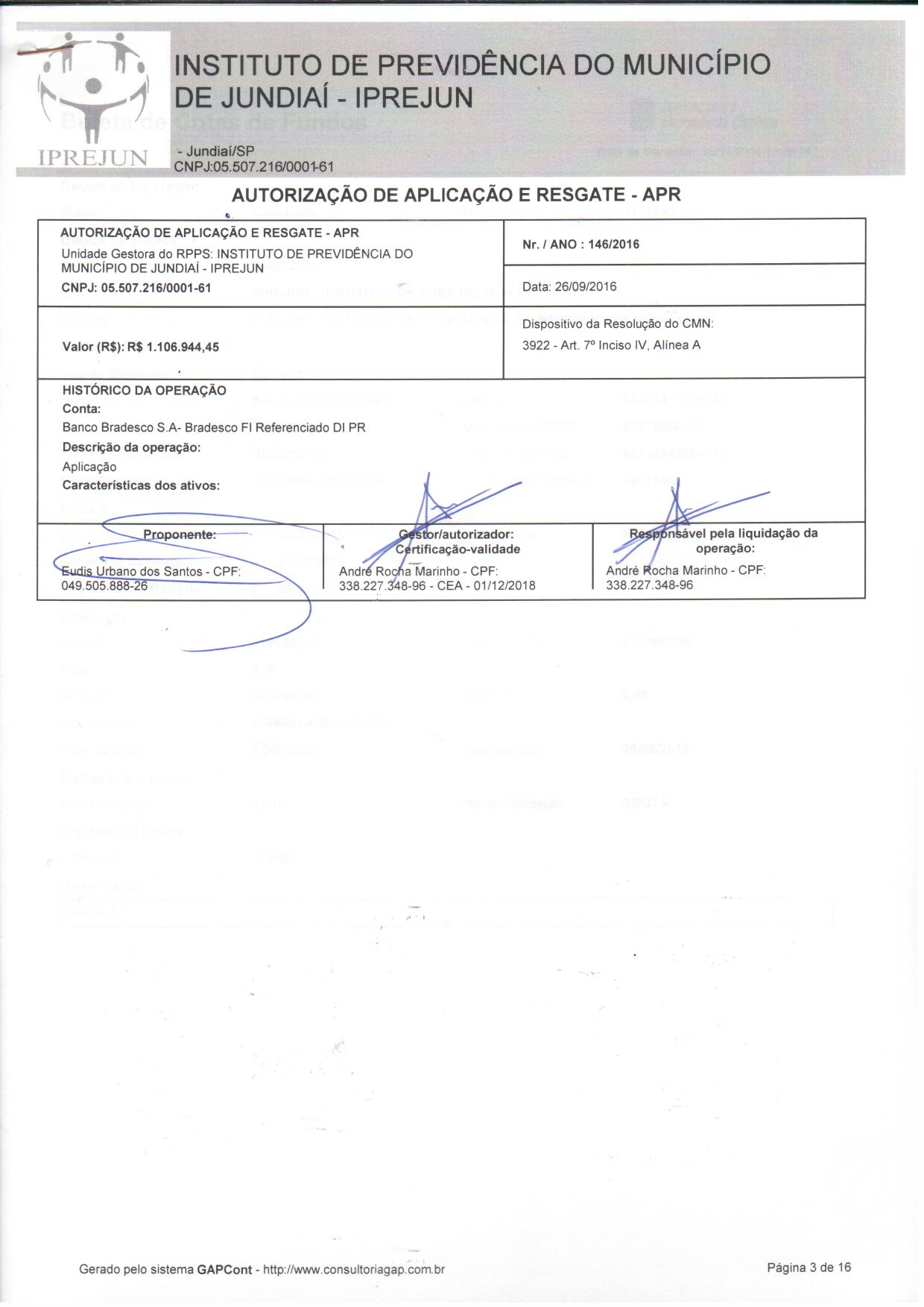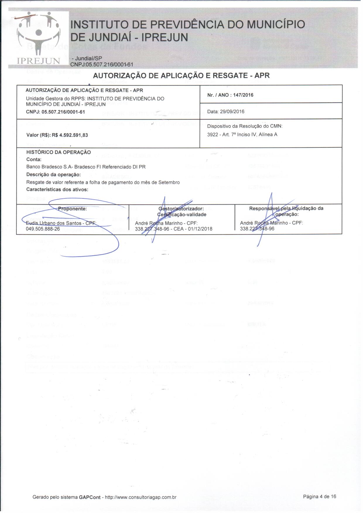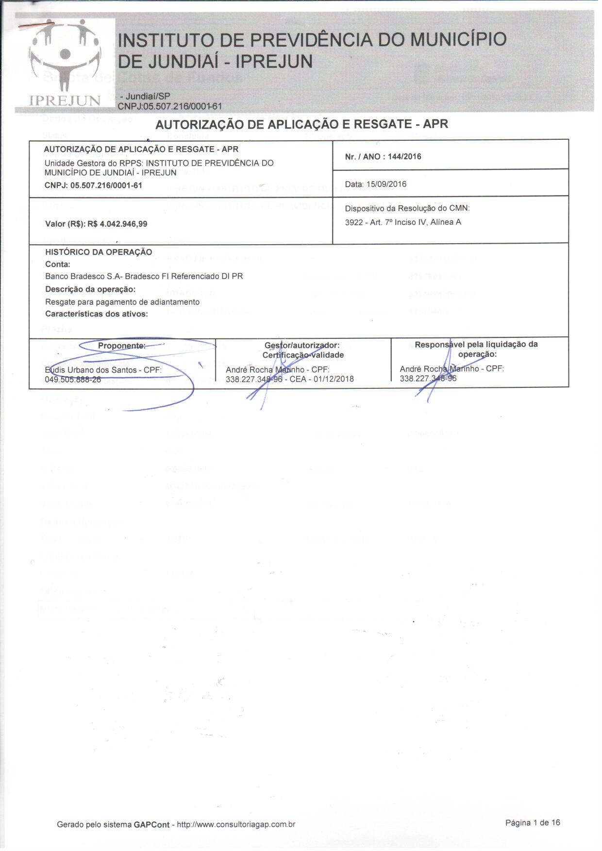 | 2016 | 144 | 15/09/2016 | 4.042.946,99 | APR | |