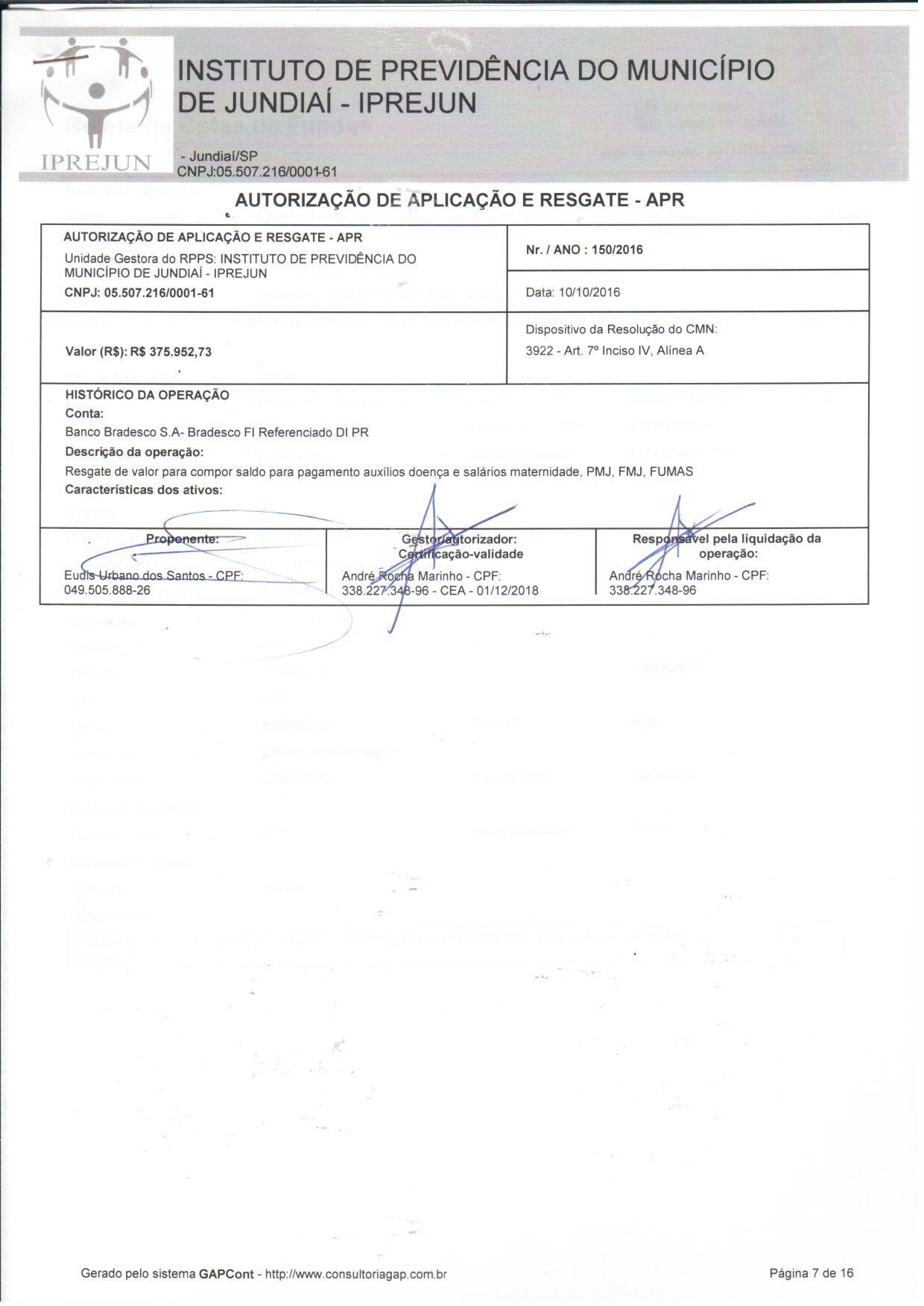 | 2016 | 150 | 10/10/2016 | 375.952,73 | APR | |