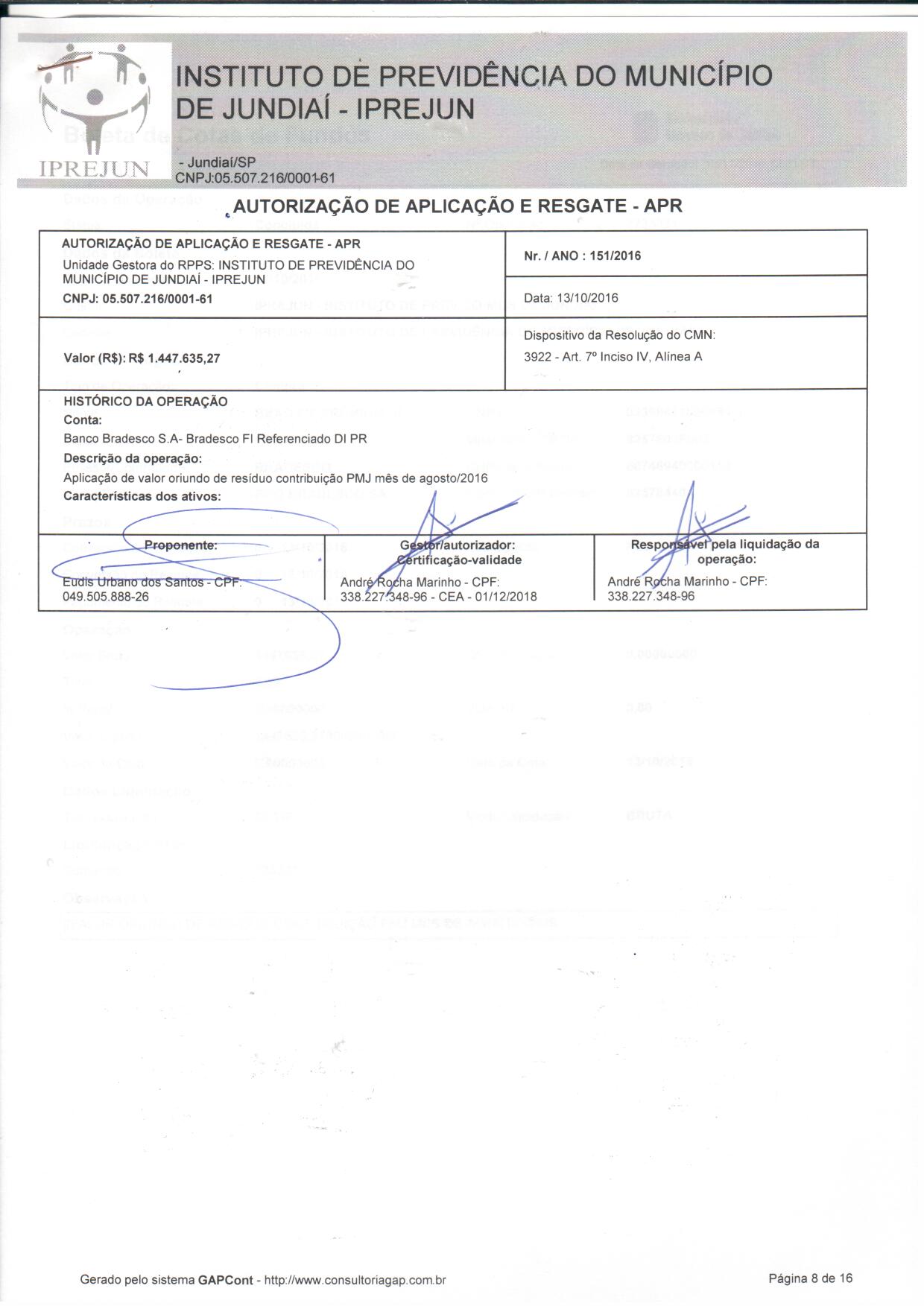 | 2016 | 151 | 13/10/2016 | 1.447.635,27 | APR | |