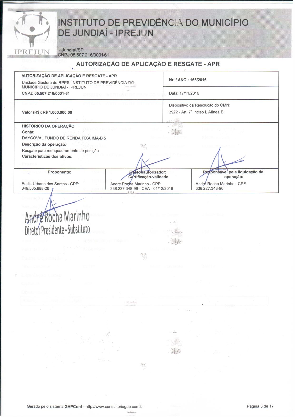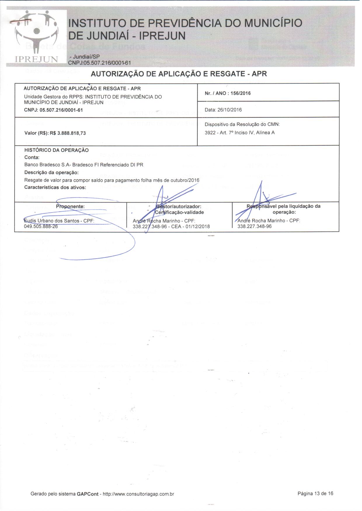 | 2016 | 164 | 11/11/2016 | 3.915.229,96 | APR | |