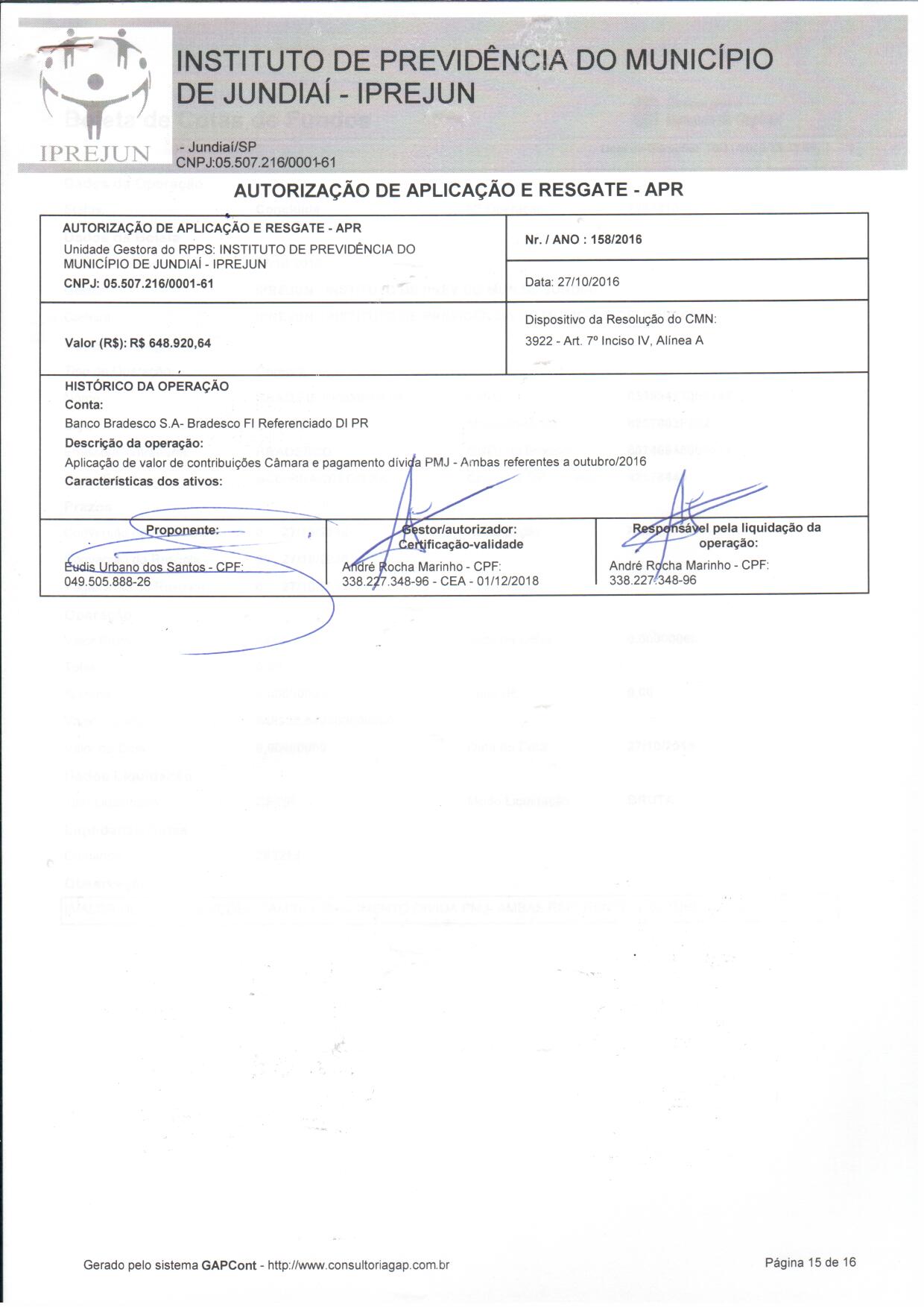 | 2016 | 158 | 27/10/2016 | 648.920,64 | APR | |