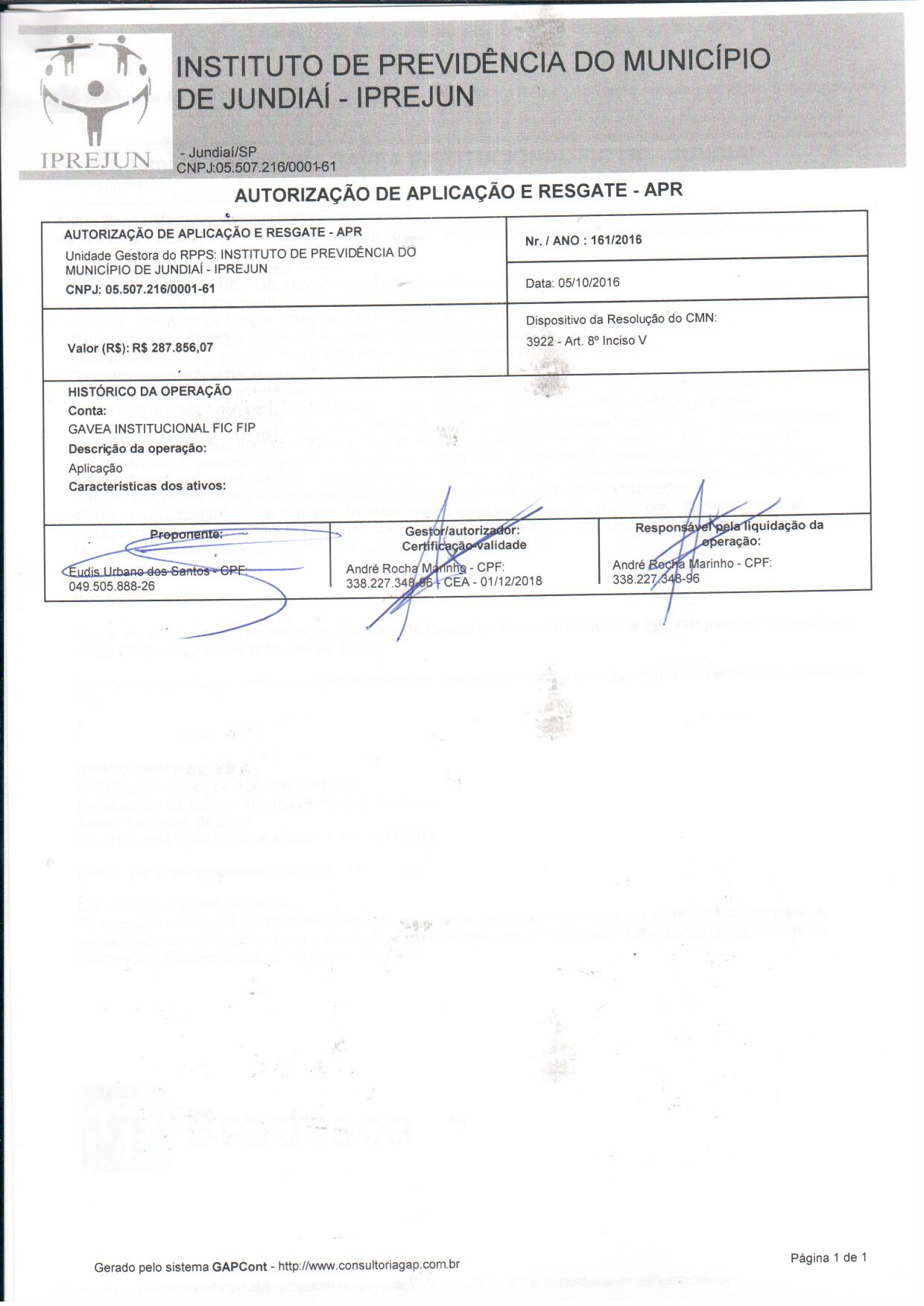| 2016 | 161 | 05/10/2016 | 287.856,07 | APR | |