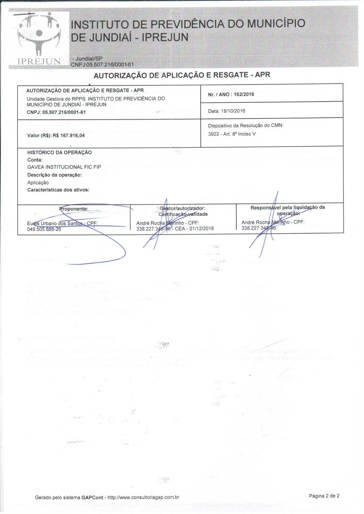 | 2016 | 162 | 18/10/2016 | 167.916,04 | APR | |