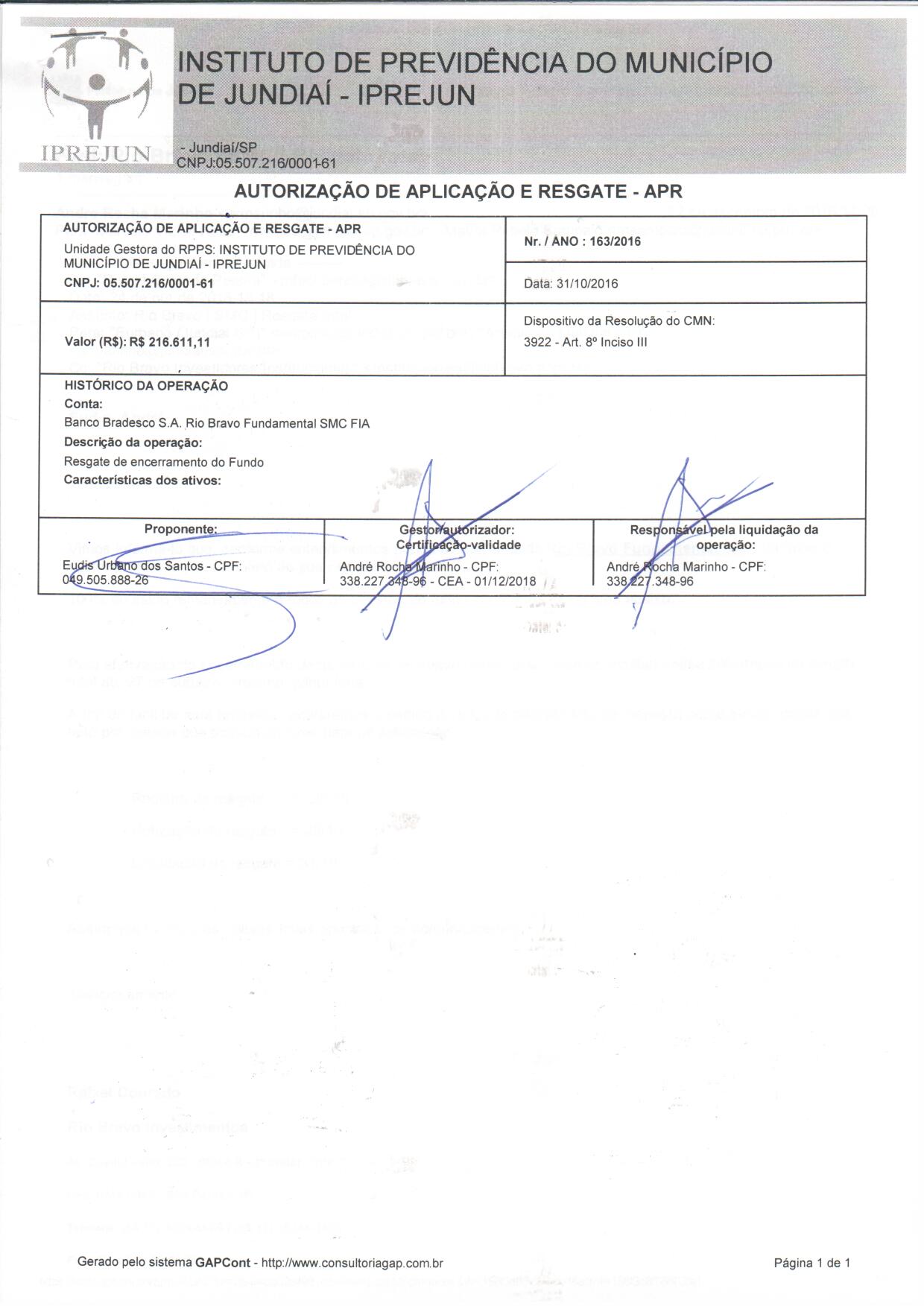 | 2016 | 163 | 31/10/2016 | 216.611,11 | APR | |
