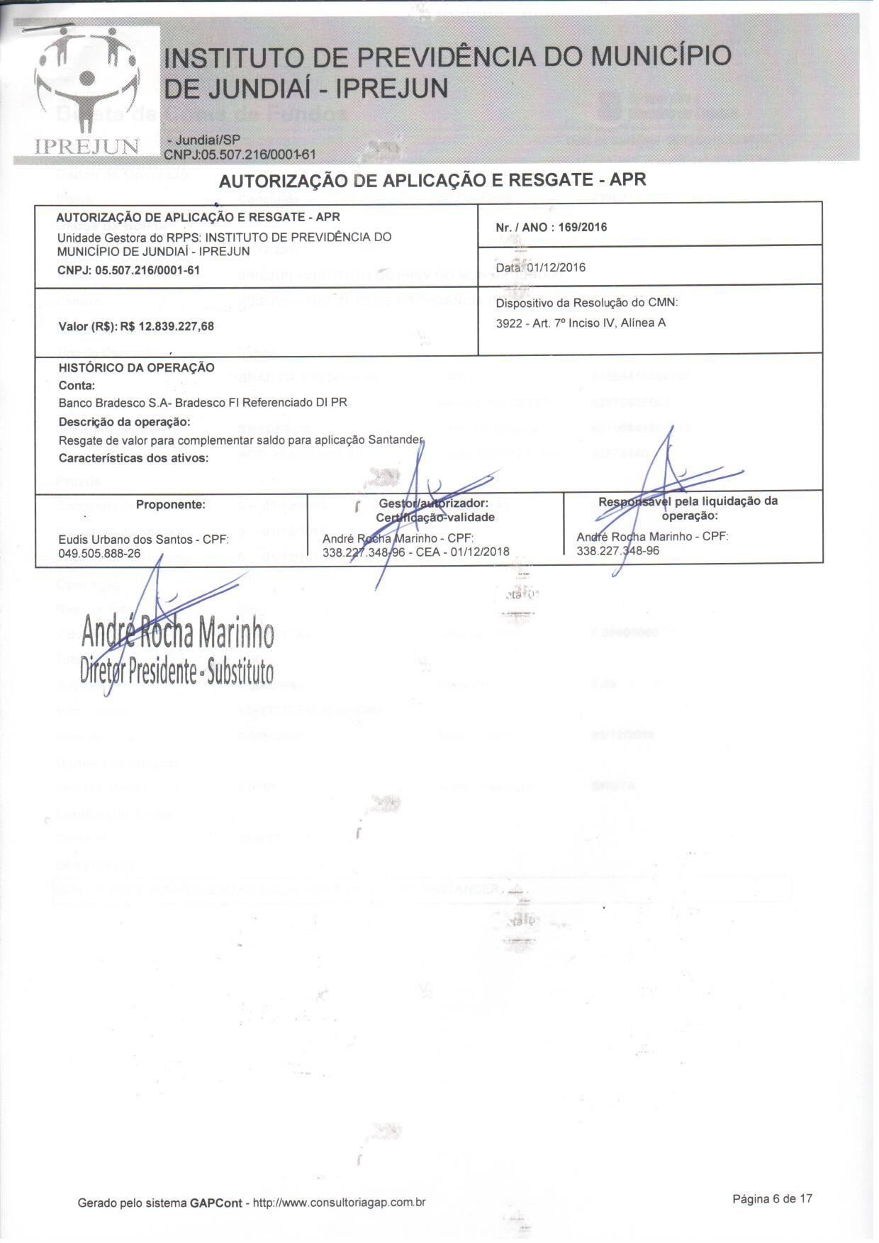 | 2016 | 169 | 01/12/2016 | 12.839.227,68 | APR | |