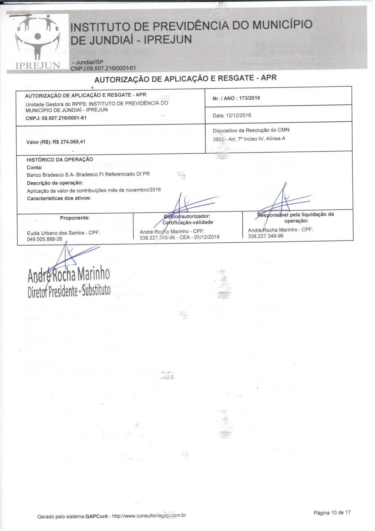 | 2016 | 173 | 12/12/2016 | 274.069,41 | APR | |
