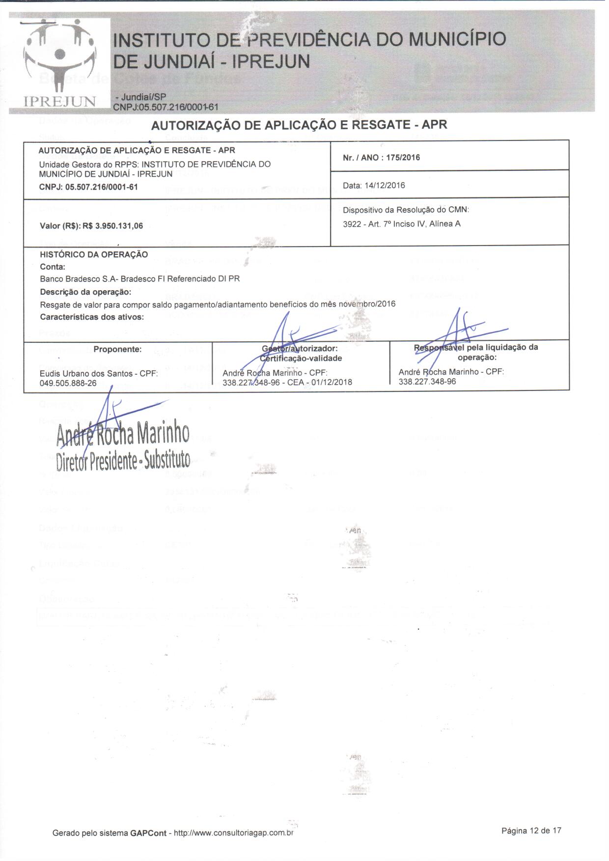 | 2016 | 175 | 14/12/2016 | 3.950.131,06 | APR | |