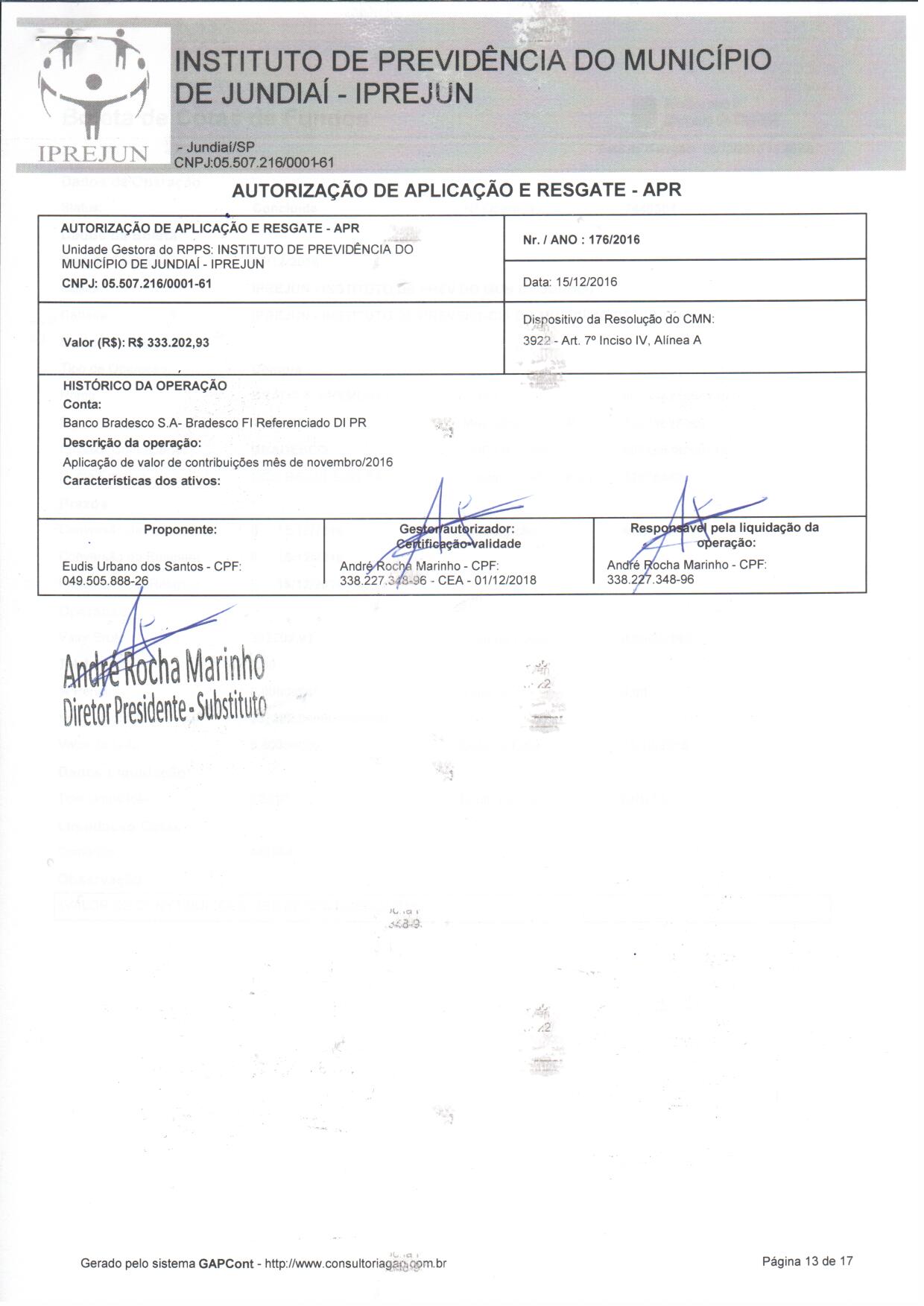 | 2016 | 176 | 15/12/2016 | 333.202,93 | APR | |